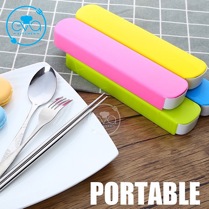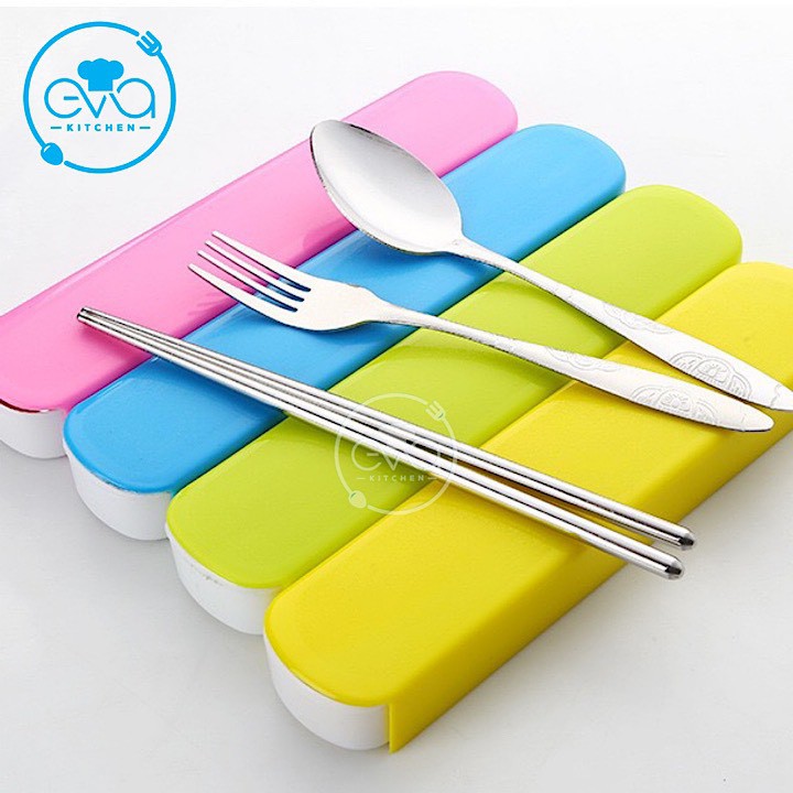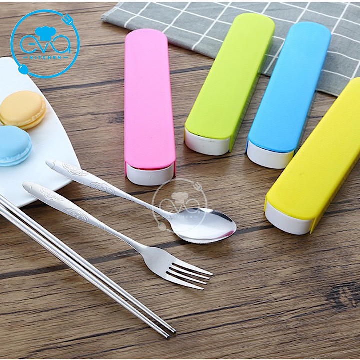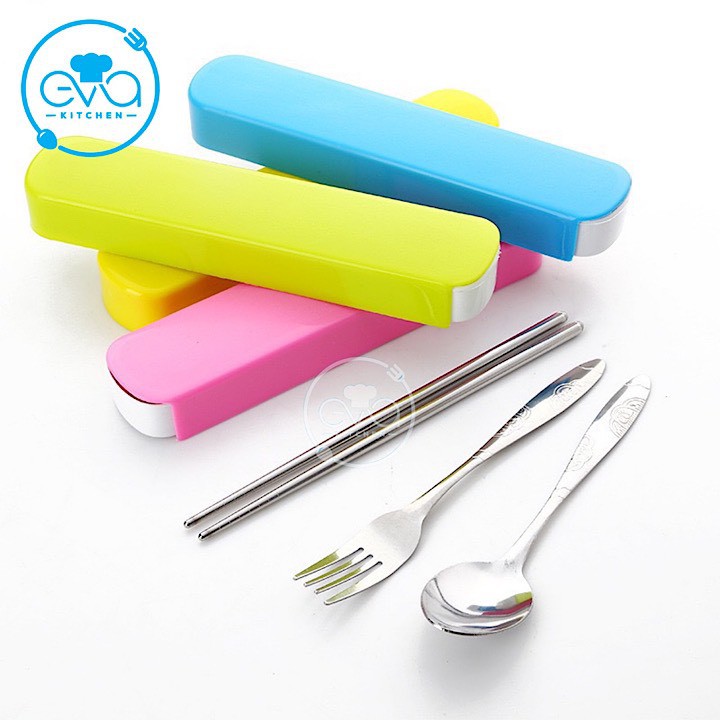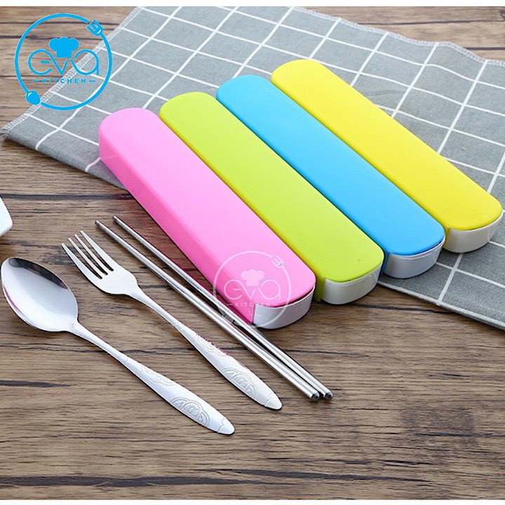 Hộp Muỗng Đũa Nĩa Inox Dùng Bữa Sắc Màu