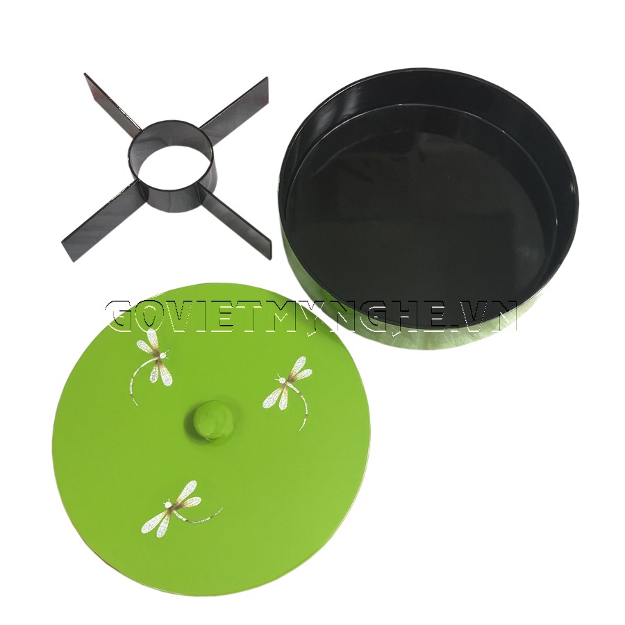 - 01 Hộp Mứt Sơn Mài Tròn Φ30cm - Cẩn Chuồn Chuồn & nền xanh lá