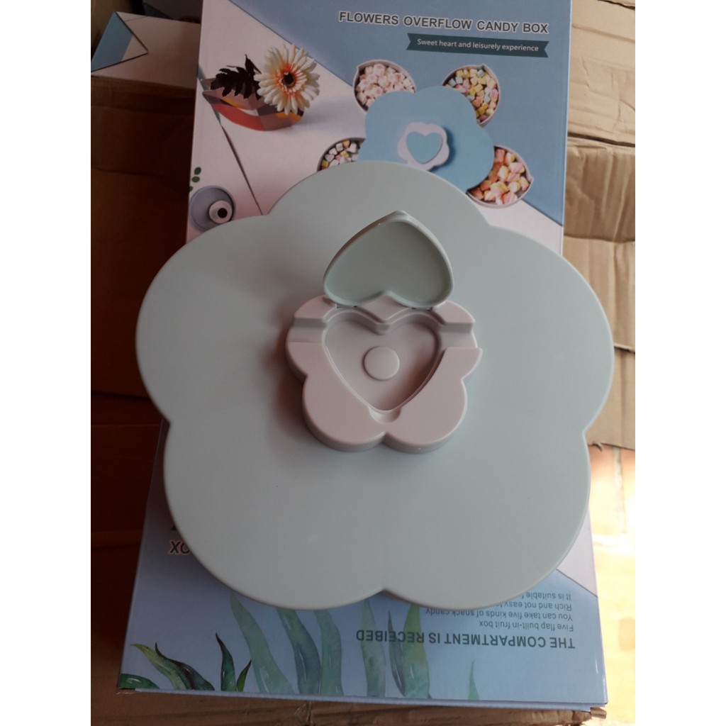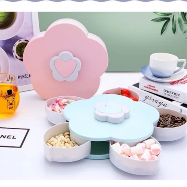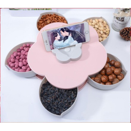 Nhà cửa & Đời sống > Bộ đồ bàn ăn > Dĩa || Hộp mứt Tết - Khay mứt 5 cánh xoay 360 độ hình hoa có chỗ để điện thoại (có khe cắm)Còn hàng