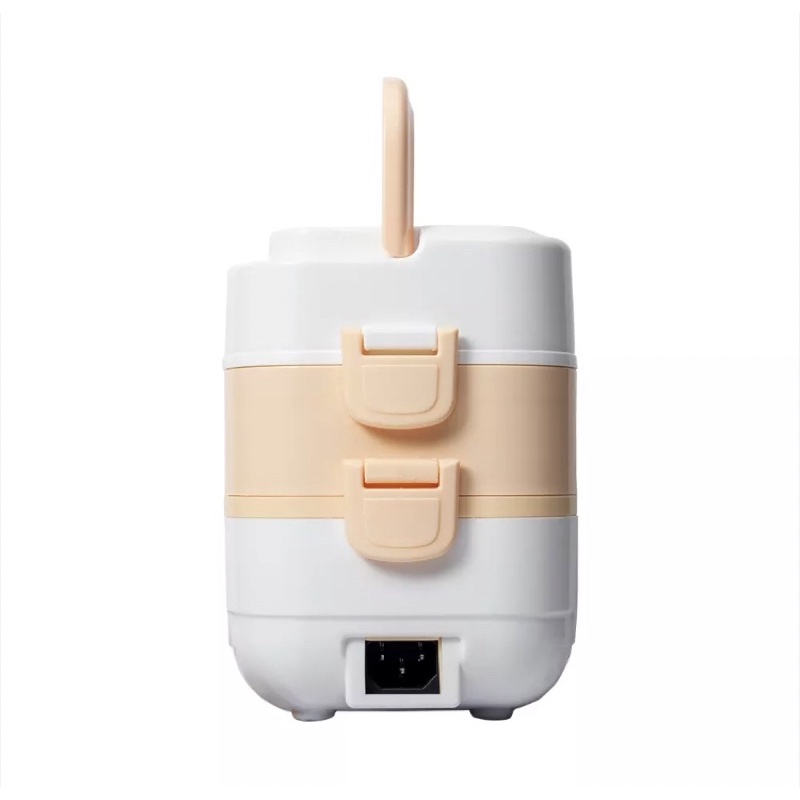 Bạn chỉ cần cắm điện và bấm nút để nấu cơm trong vòng 20 – 30 phút hoặc hâm nóng thức ăn trước bữa ăn 10 phút, là bạn đã có được một bữa trưa nóng sốt, thơm ngon và đầy dinh dưỡng. Với thiết kế hình trụ tròn có 3 tầng, sản phẩm cho sức chứa tối đa, đảm bảo cung cấp không gian chứa thức ăn cần thiết cho nhiều người ăn giúp bạn tiết kiệm thời gian