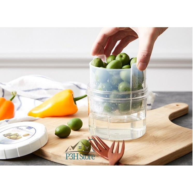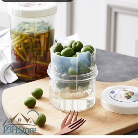 Hộp thiết kế chuyên dụng dùng ngâm những món phụ gia vị đi kèm những bữa ăn ngon như : tỏi , ớt , olive , ... , bên trong hộp có khay nhựa rút nước , chỉ cần nhấc lên là bạn có thể lấy được thực phẩm khô ráo nước 1 cách dễ dàng , không còn phải ngại việc chắt nước , hay gắp làm hự thực phẩm lưu trữ còn lại .