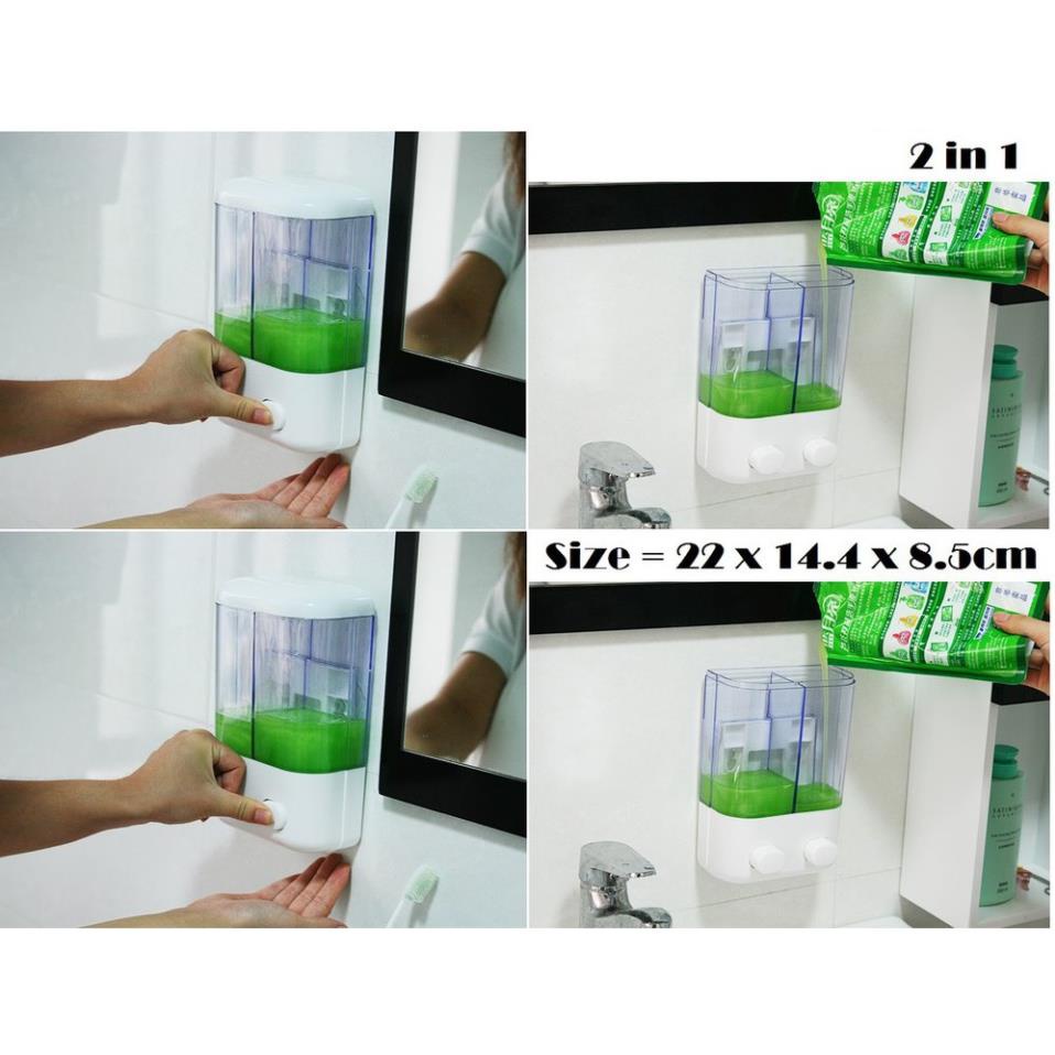 Hộp nhả dầu gội, sữa tắm, chất lỏng 2 ngăn 1 ngăn gắn tường không khoan tiện lợi dùng khách sạn nhà nghỉ gia đình