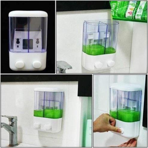 Giới thiệu Hộp nhả dầu gội, sữa tắm, chất lỏng 2 ngăn 1 ngăn gắn tường không khoan tiện lợi dùng khách sạn nhà nghỉ gia đình