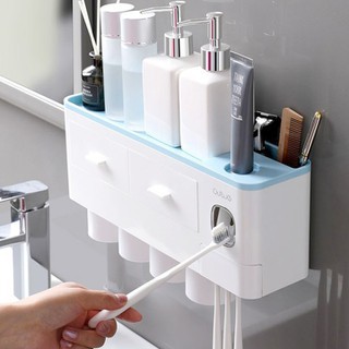 Bộ nhả kem đánh răng kèm 4 cốc, kệ để đồ nhà tắm đa năng có ngăn kéo làm bằng chất liệu nhựa cao cấpKết hợp với ngăn kéo để đồ cá nhân + Chất liệu nhựa cao cấp đảm bảo an toàn cho gia đình bạn.