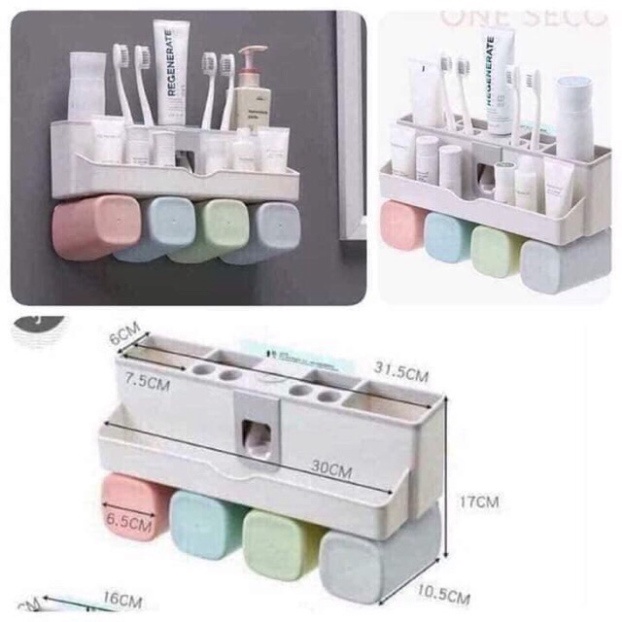 HỘP NHẢ KEM ĐÁNH RĂNG LÚA MẠCH TẶNG KÈM 4 CỐC-Hộp đựng kem đánh răng có tác dụng tự động xịt kem đánh răng lên bàn chải chỉ bằng lực nhấn nhẹ vào cần bơm của thiết bị, giúp tiết kiệm lượng kem.