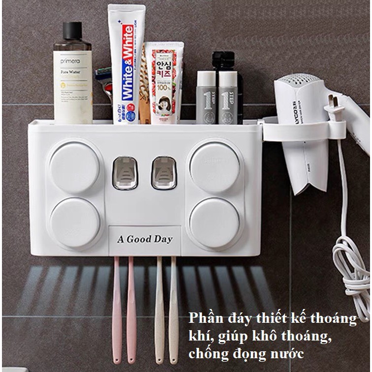 Hộp đựng bàn chải kem đánh răng nhà tắm tặng kèm 4 cốc-Kệ để đồ vệ sinh răng miệng