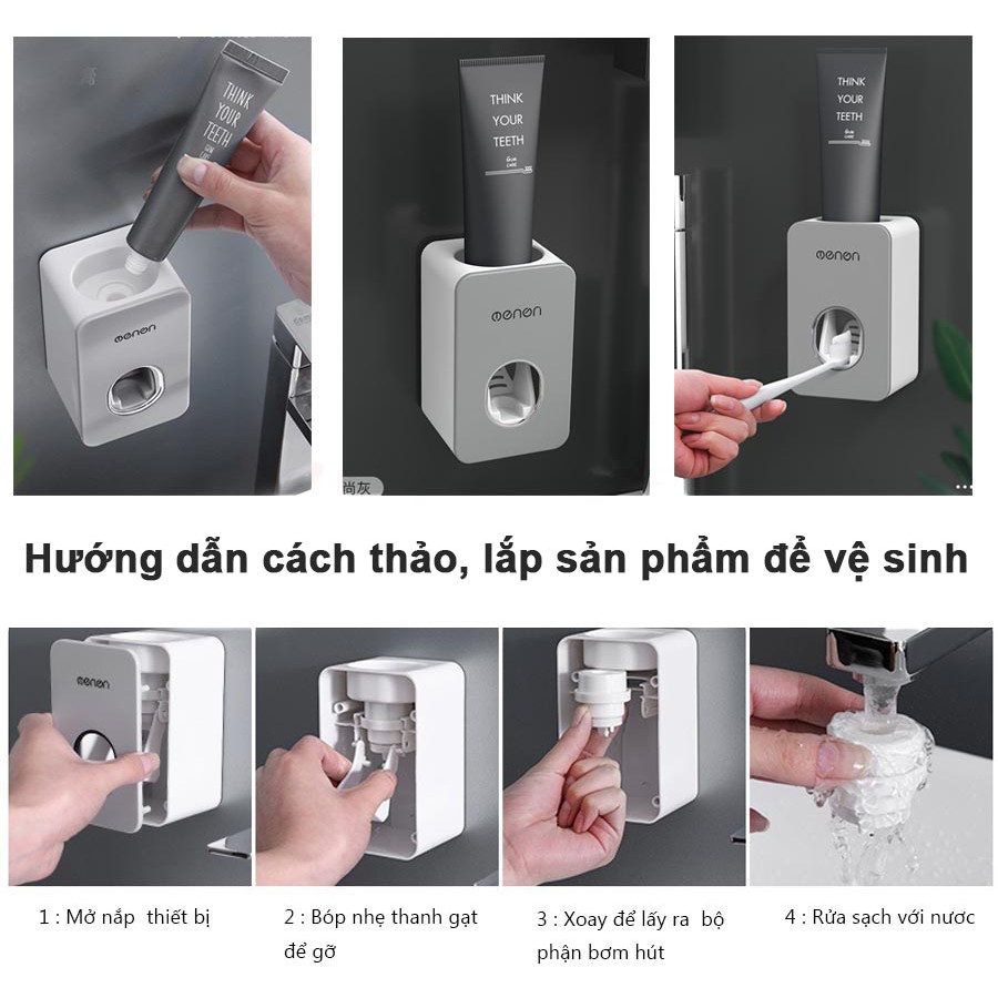 - Hộp lấy kem đánh răng tự động gắn tường MENG NI OENON dựa trên công nghệ lực hút chân không, hút kem đánh răng từ tuýp ra bàn chải một lượng vừa đủ, thao tác đơn giản, nhanh chóng chỉ với một lần đẩy nhẹ nhàng.
