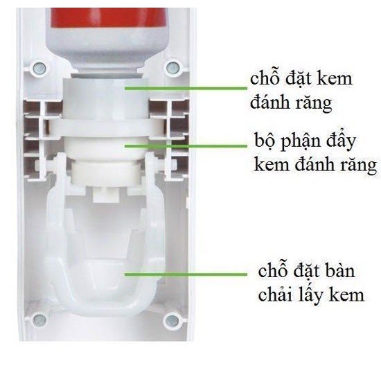 - Phần để tuýp kem đánh răng là dạng nặn kem tự động, chỉ cần đưa đầu bàn chải vào nhấn nhẹ là kem đánh răng chảy xuống, rất tiện lợi.