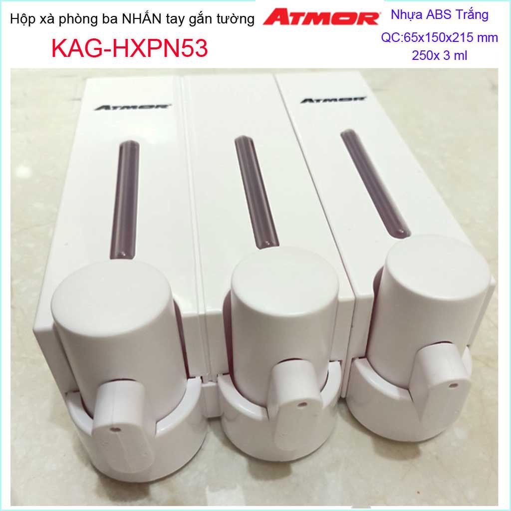 Hộp nhấn xà phòng Atmor, hộp đựng xà phòng KAG-HXPN53-Trắng-WhiteKích thước 150mmx65mmx215mm ( dung tích 250ml x 3)