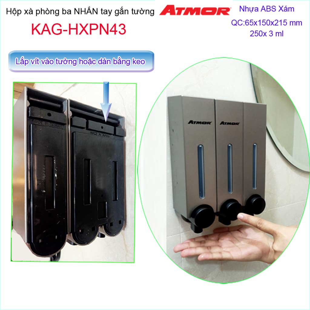 Hộp nhấn xà phòng Atmor, hộp đựng xà phòng KAG-HXPN43-Xám, Dark greyKích thước 150mmx65mmx215mm ( dung tích 250ml x 3)