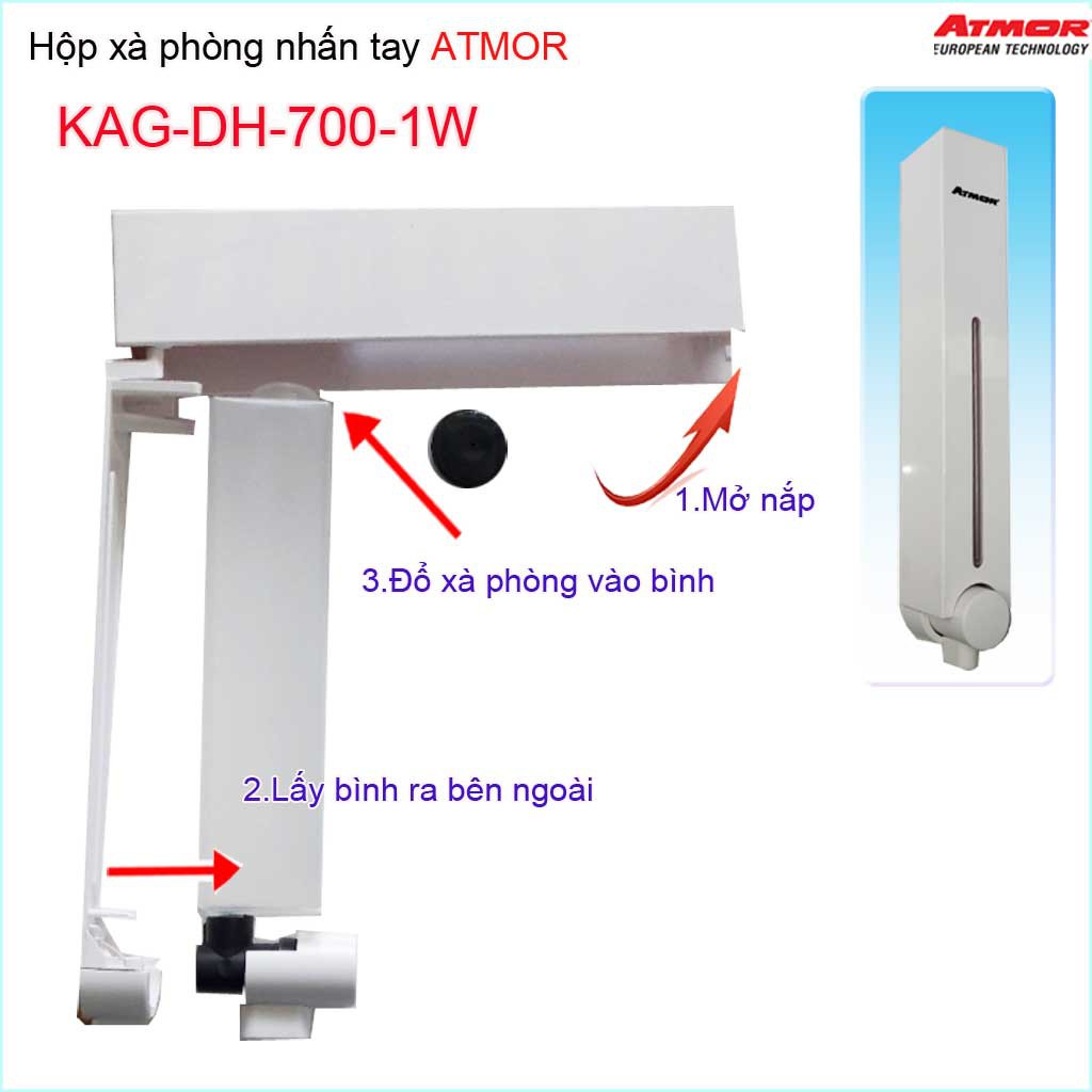Hộp nhấn xà phòng Atmor KAG-DH7001W-white trắng, bình xịt xà bông 500ml thiết kế sang trọng nhấn êm siêu bềnHộp nhấn xà phòng, Bình xịt xà phòng KAG-DH700.1W ( hay còn gọi là hộp xà phòng nhấn tay, hộp xà phòng treo tường, hộp đựng xà bông nước ...)