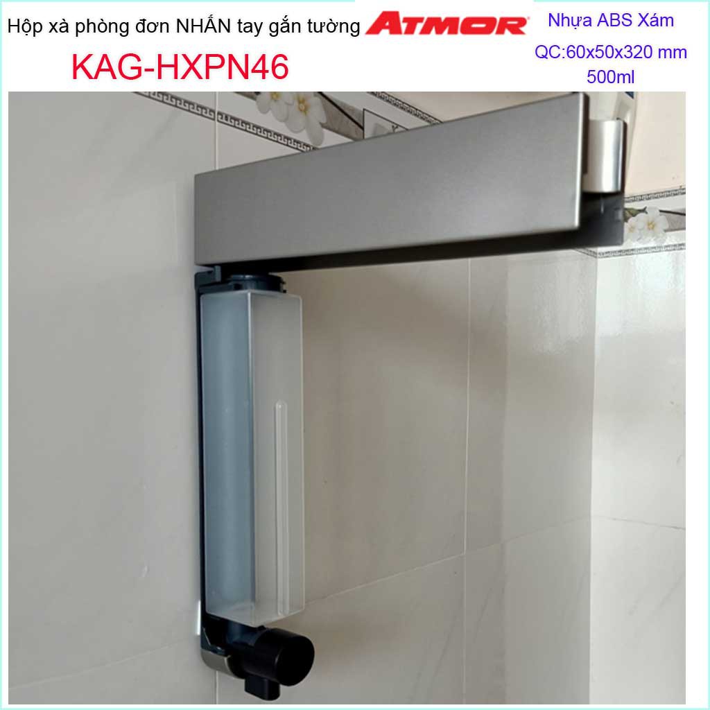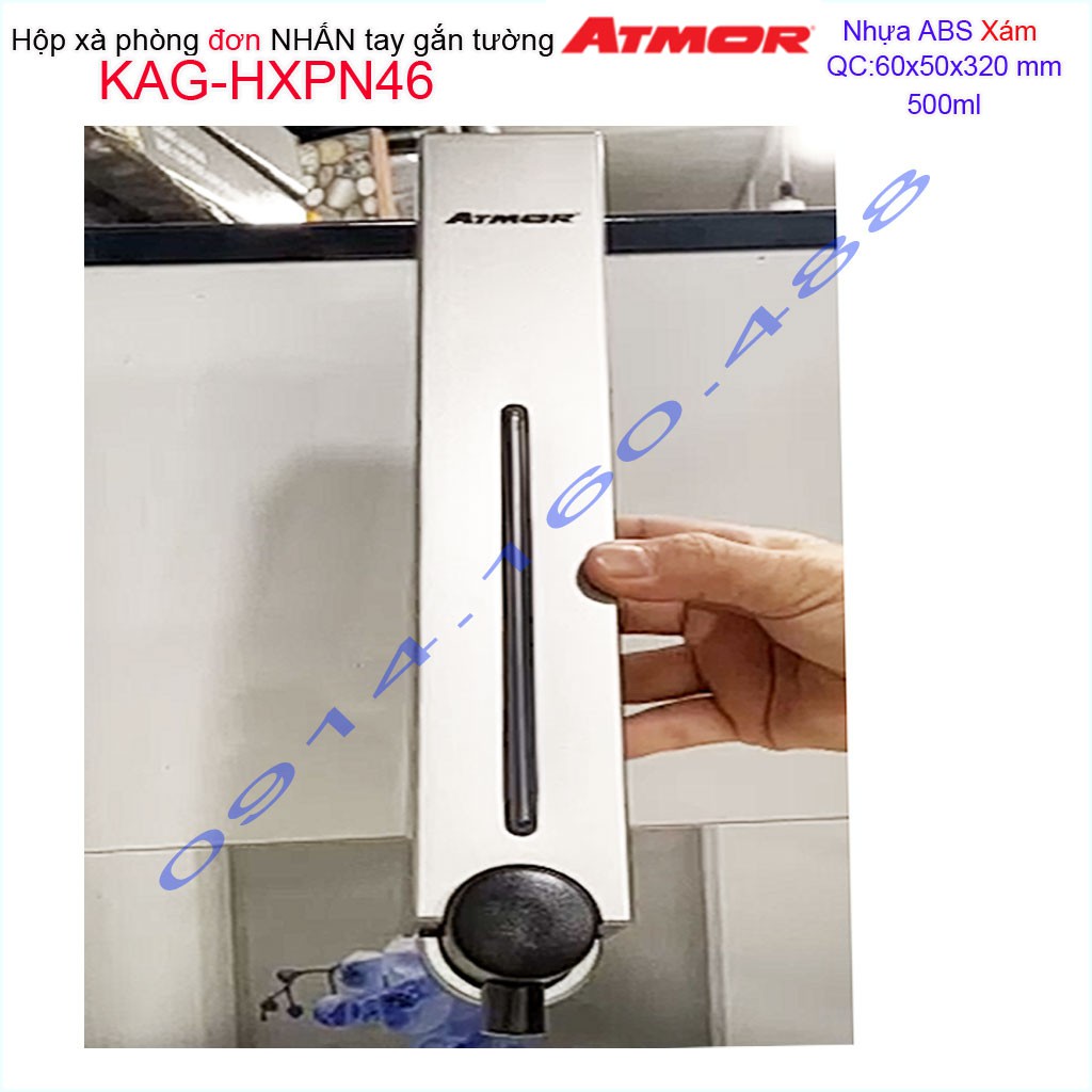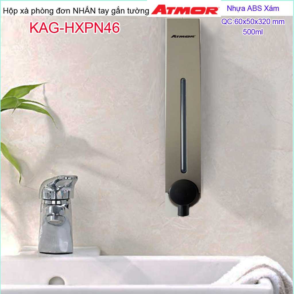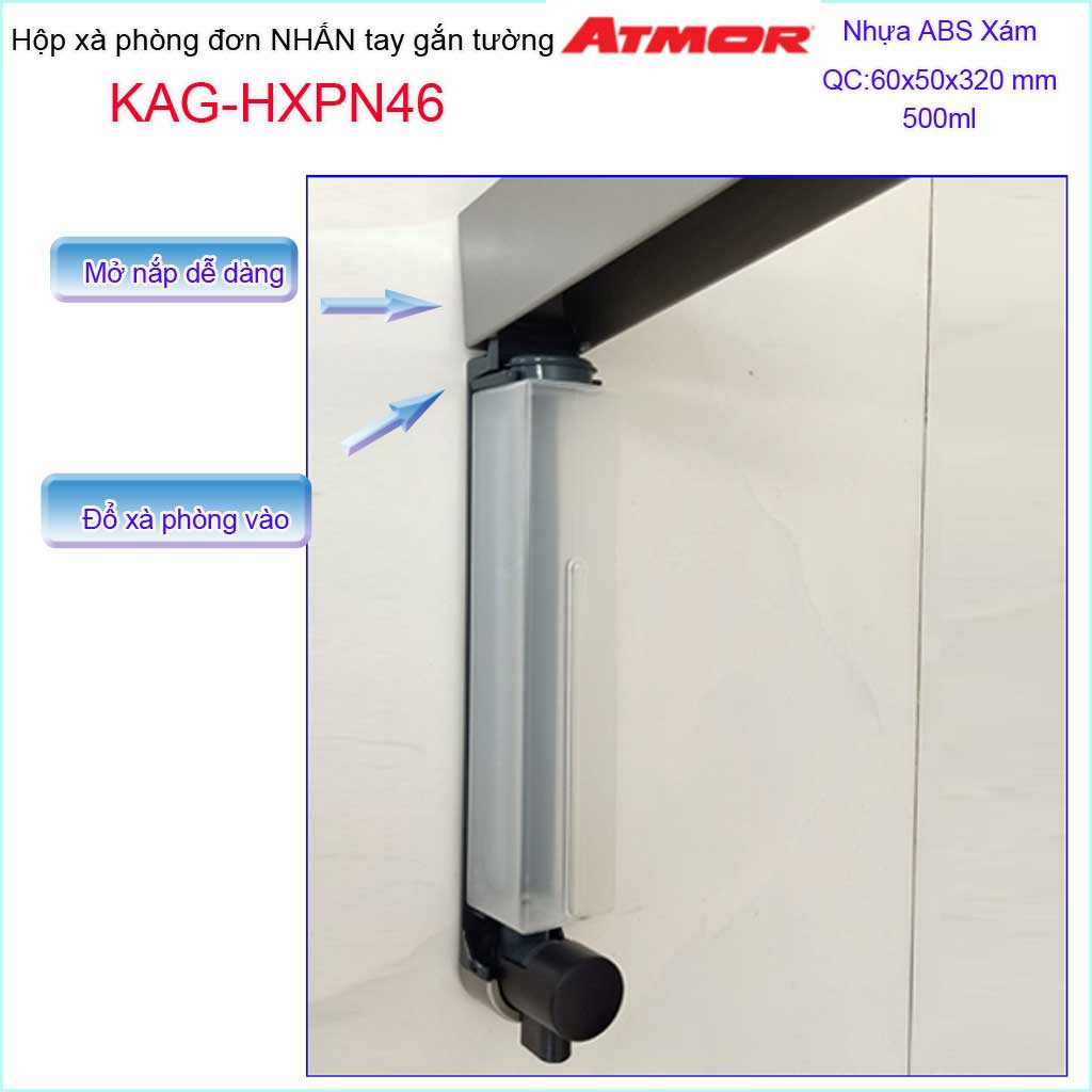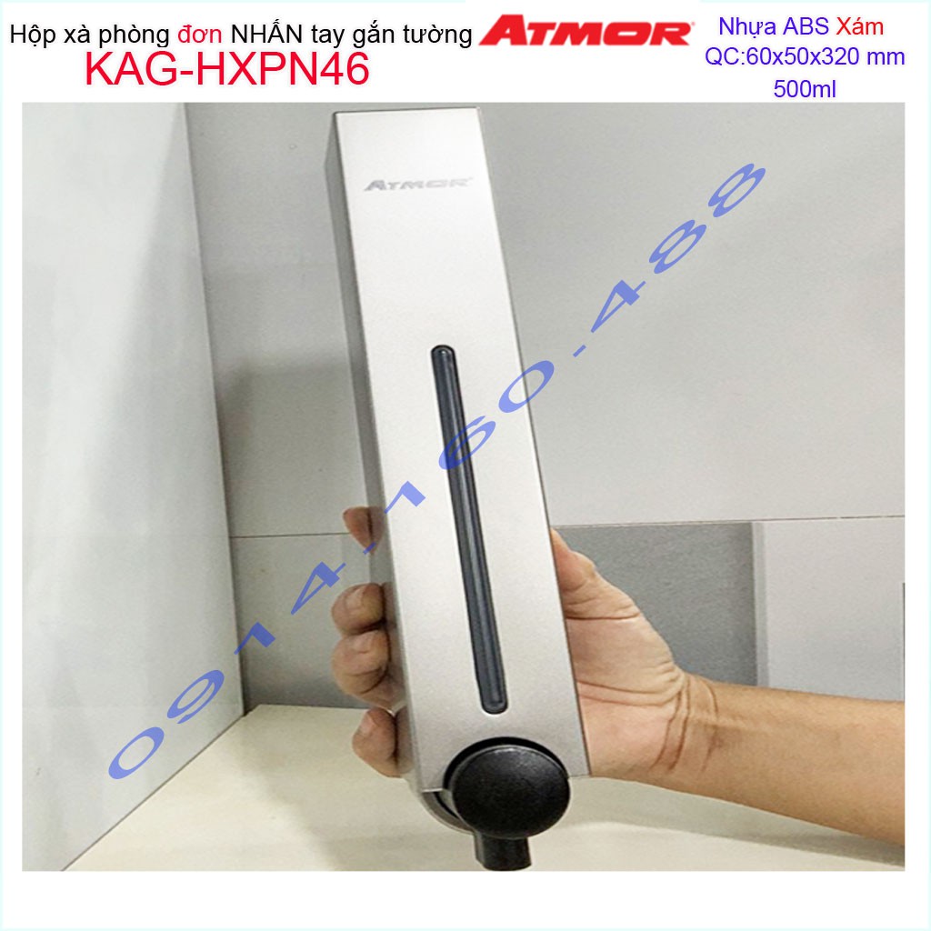 Hộp nhấn xà phòng Atmor KAG-HXPN46-Grey-Xám, bình xịt xà bông 500ml thiết kế sang trọng nhấn êm siêu bềnKích thước 60mmx50mmx320mm ( dung tích 500ml)