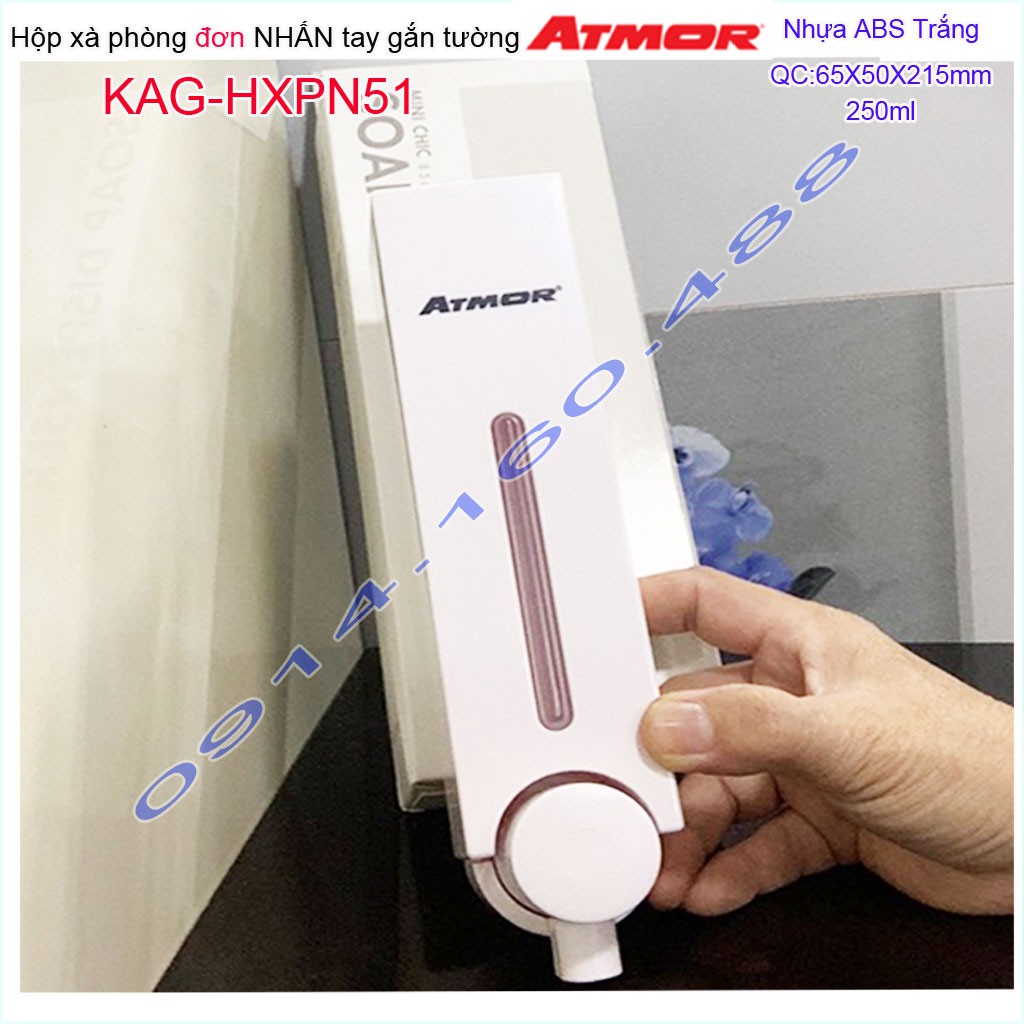 Hộp nhấn xà phòng Atmor KAG-HXPN51-Trắng-White, bình xịt xà bông 250ml thiết kế sang trọng nhấn êm siêu bềnKích thước 50mmx65mmx215mm ( dung tích 250ml)