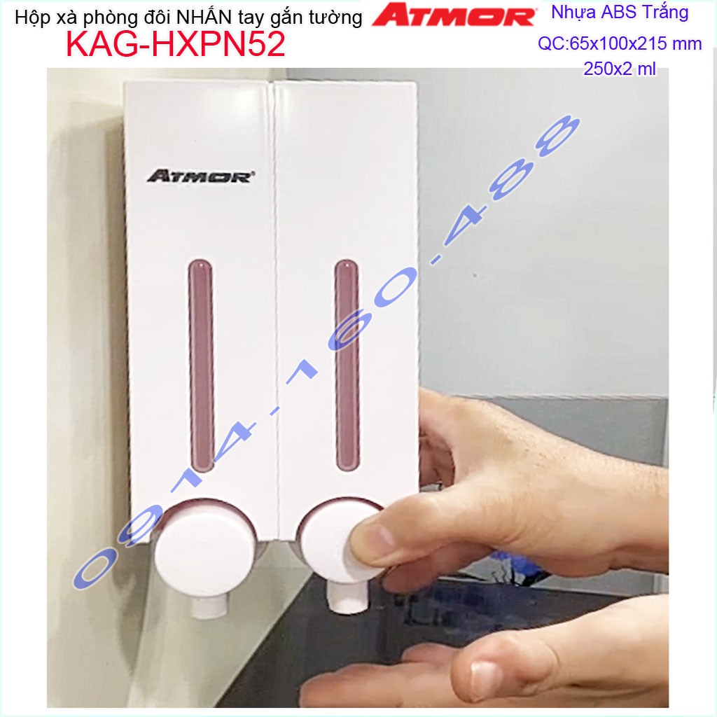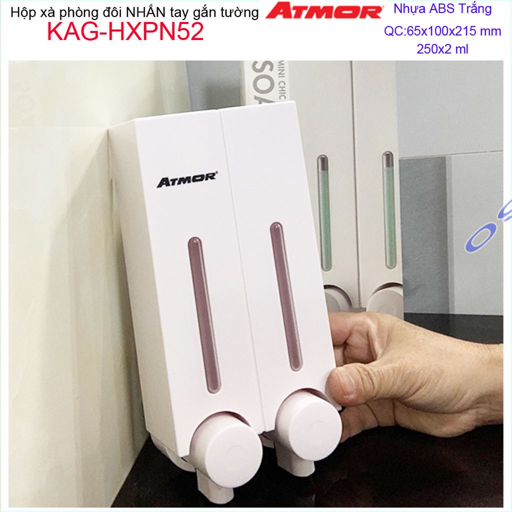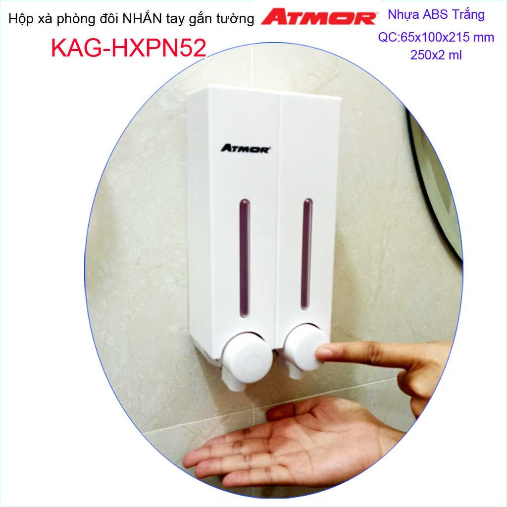 Hộp nhấn xà phòng Atmor KAG-HXPN52-Trắng-White, bình xịt xà bông 250ml x2 thiết kế sang trọng nhấn êm siêu bềnKích thước 100mmx65mmx215mm ( dung tích 250ml x 2)