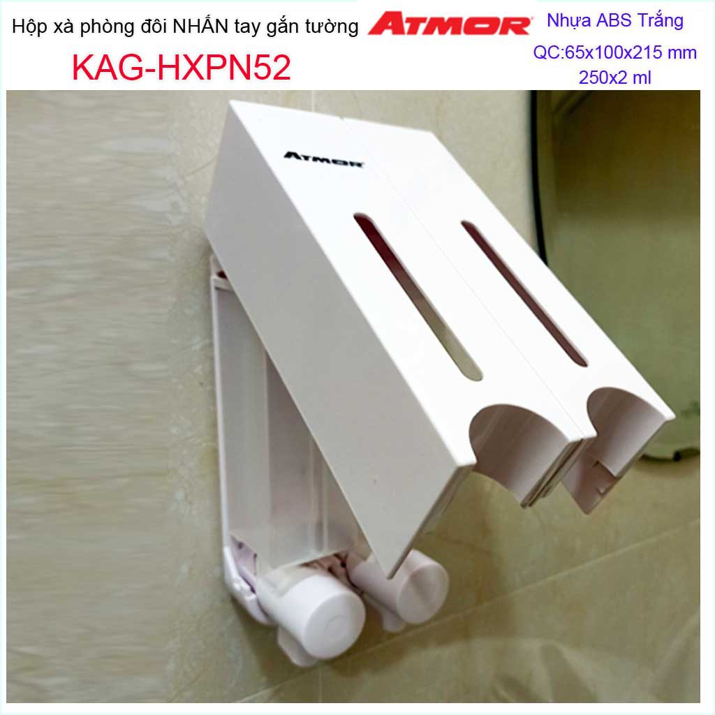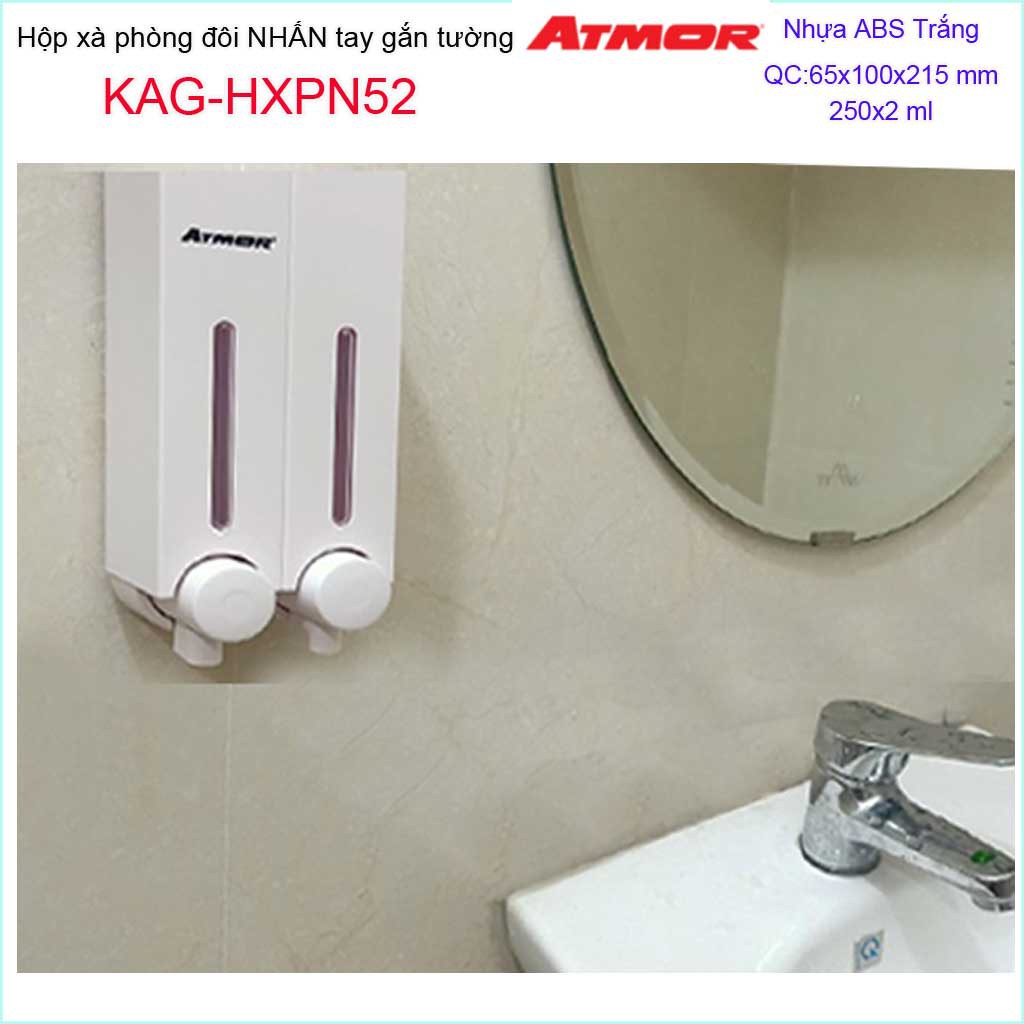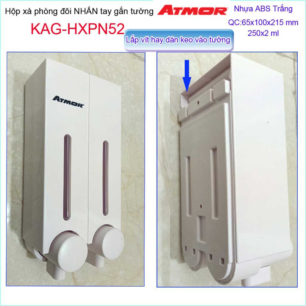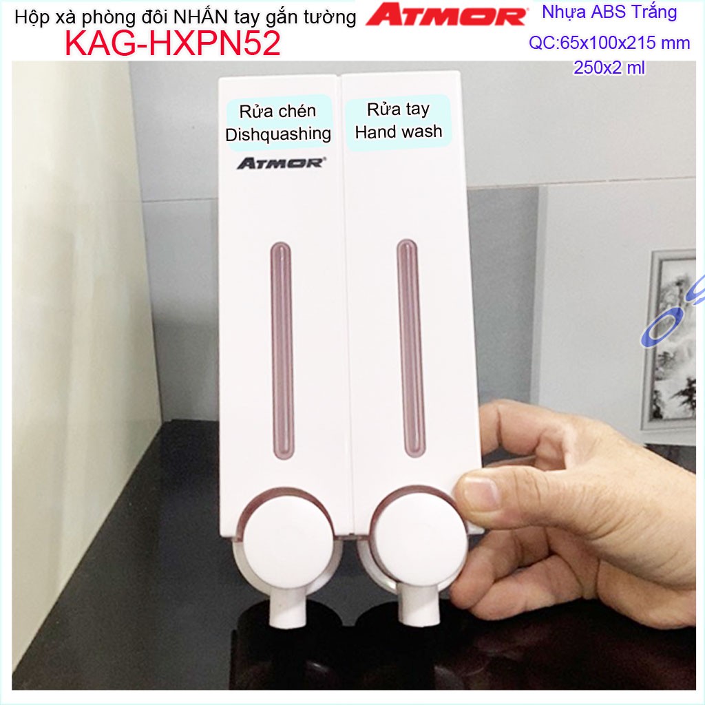 Hộp nhấn xà phòng Atmor KAG-HXPN52-Trắng-White, bình xịt xà bông 250ml x2 thiết kế sang trọng nhấn êm siêu bềnKích thước 100mmx65mmx215mm ( dung tích 250ml x 2)