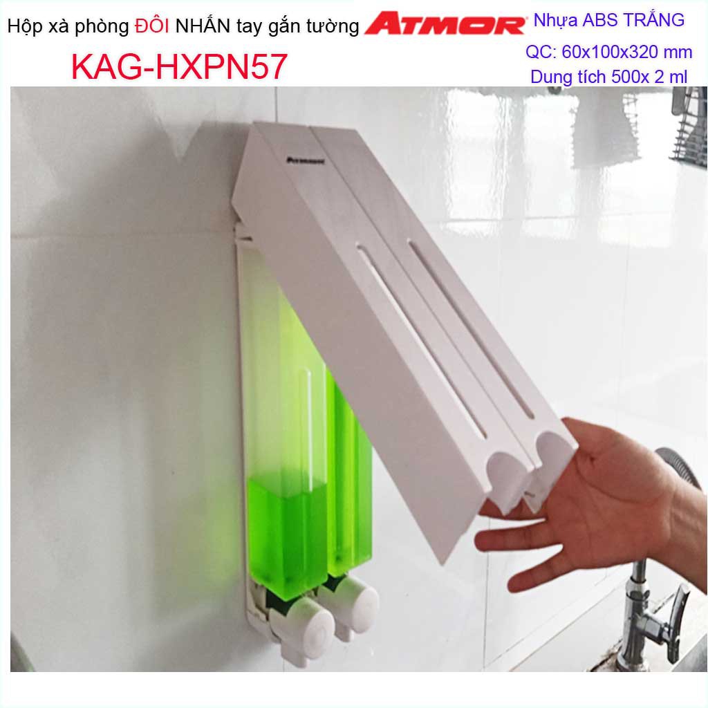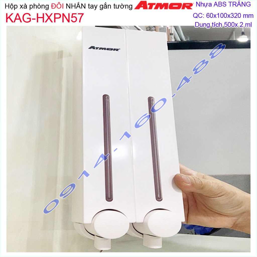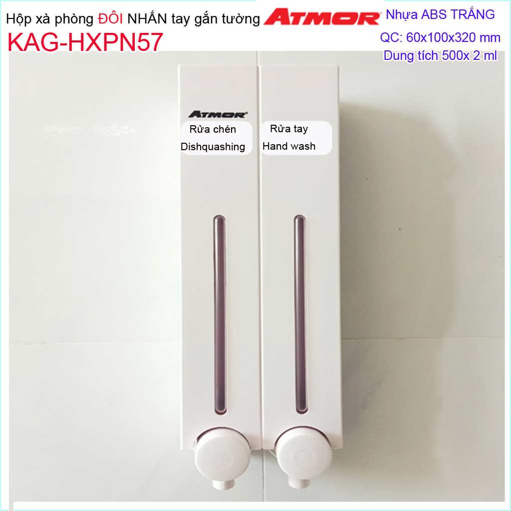 Hộp nhấn xà phòng Atmor KAG-HXPN57-Trắng-White, bình xịt xà bông 500ml x2 thiết kế sang trọng nhấn êm siêu bềnKích thước 60mmx100mmx320mm (dung tích 500ml x2)