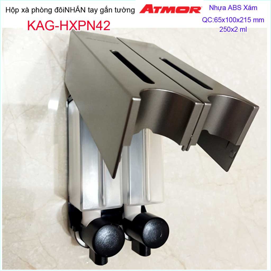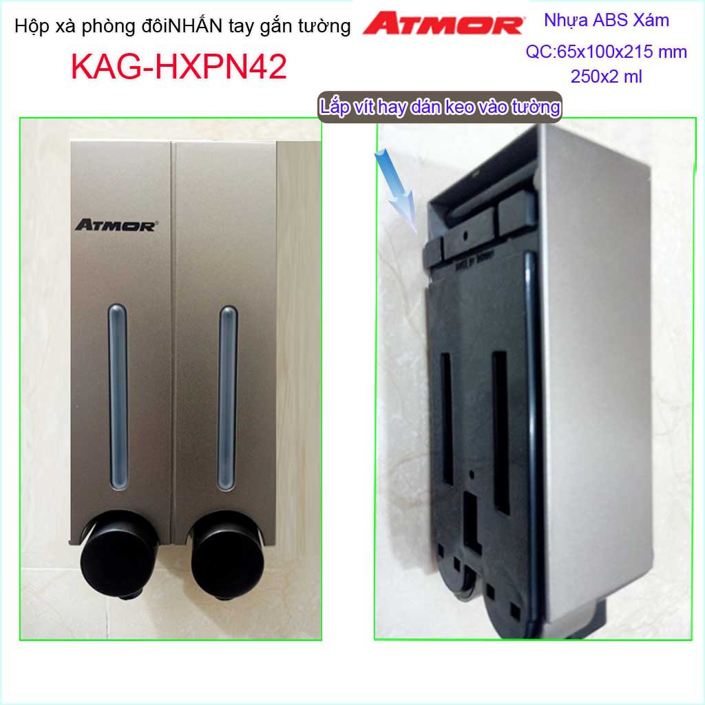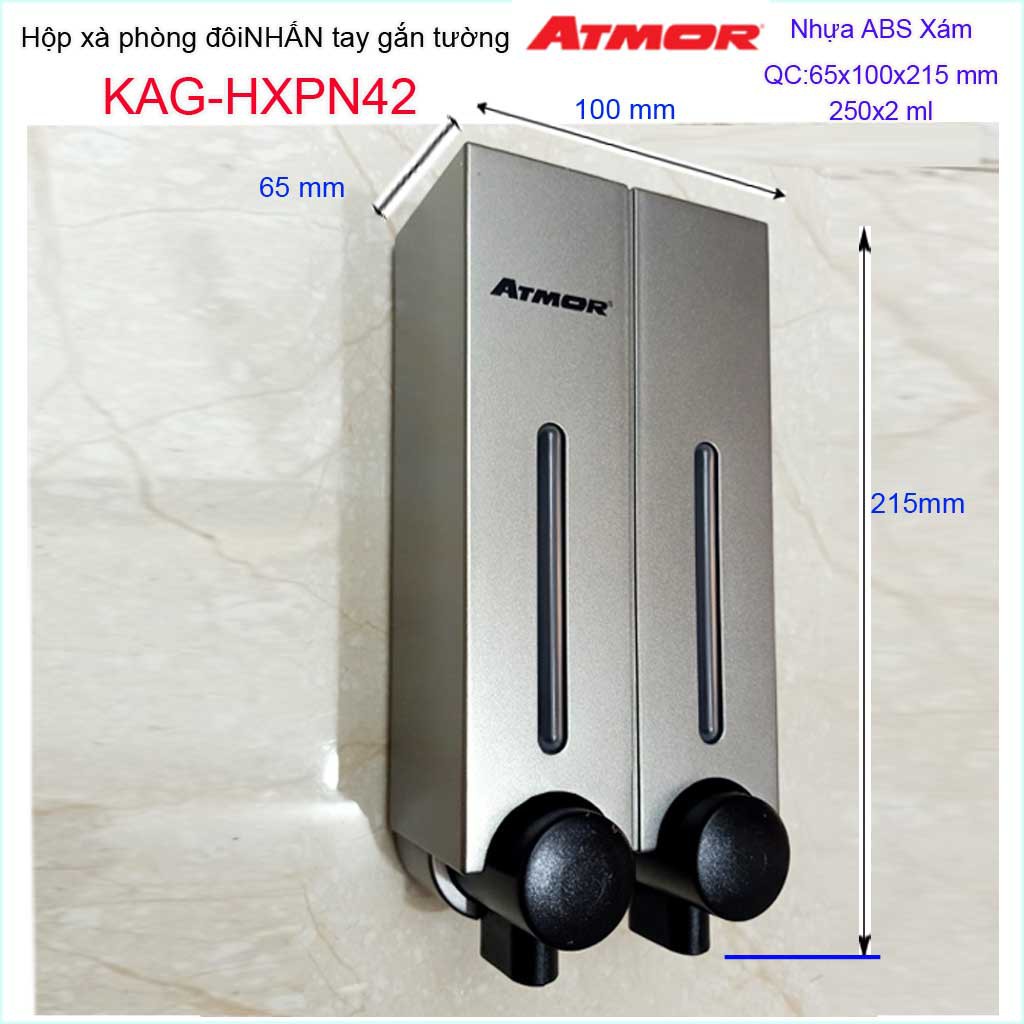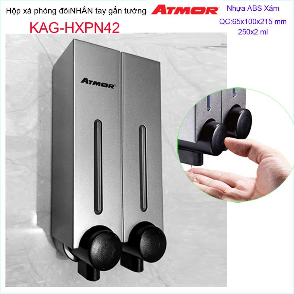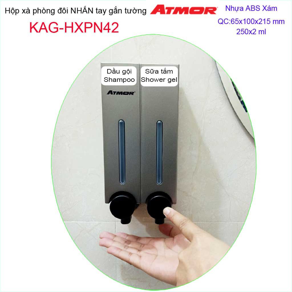 Hộp nhấn xà phòng đôi Atmor KAG-HXPN42-Xám, hộp đựng xà bông 250ml x2 Dark grey nhấn êm thiết kế đẹp siêu bềnKích thước 100mmx65mmx215mm ( dung tích 250ml x 2)