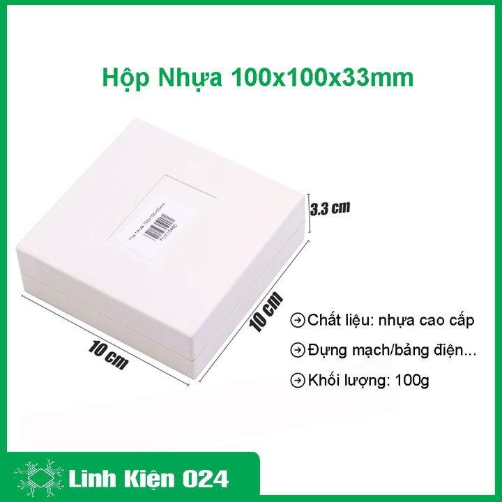 Hộp Nhựa 100x100x33mmHộp Nhựa 100x100x33mm là một sản phẩm đa năng: được dùng đựng mạch điện, bảng điện,...Đảm bảo gọn nhẹ thuận lợi cho việc di chuyển.