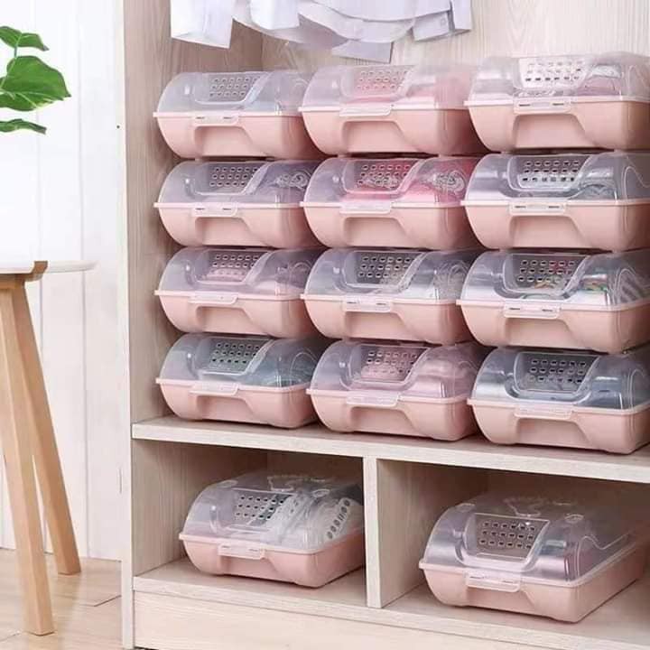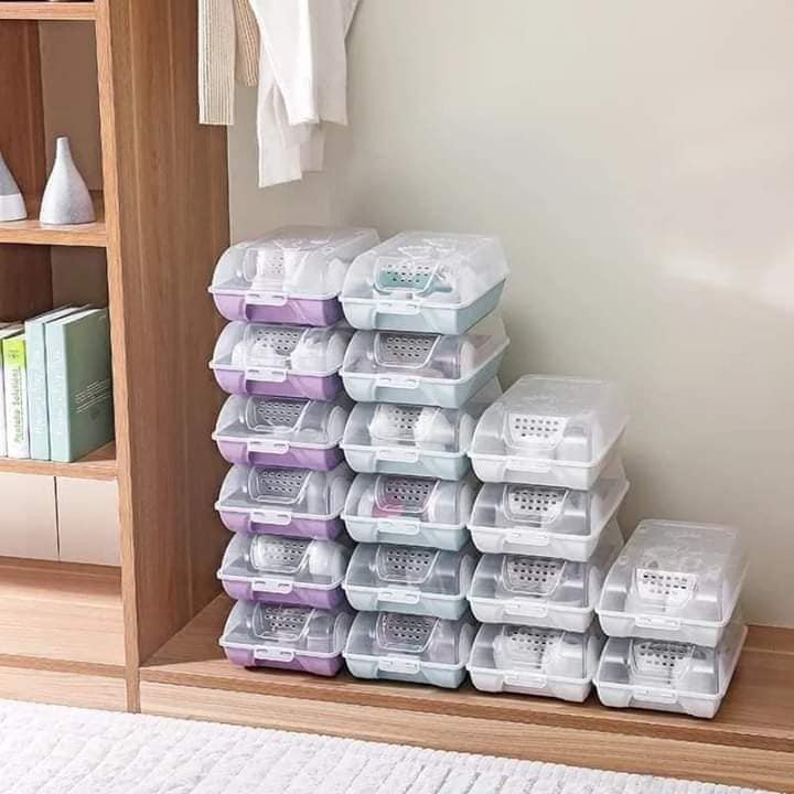 Hộp đựng giày, loại nhựa trong cao cấp, có lỗ nên rất thoáng khí 👌🏻👌🏻👌🏻Em đảm bảo nhận hàng ai cũng mê