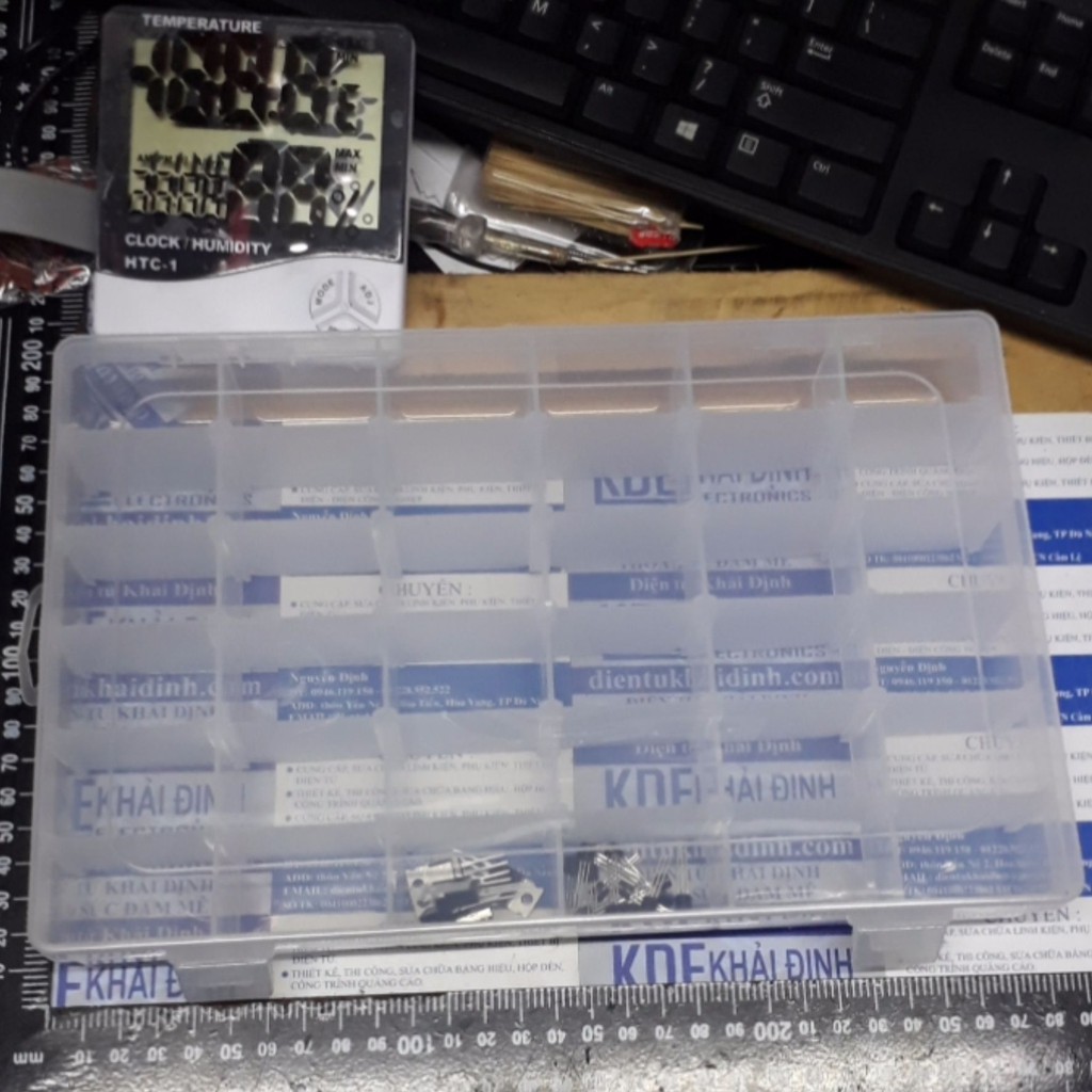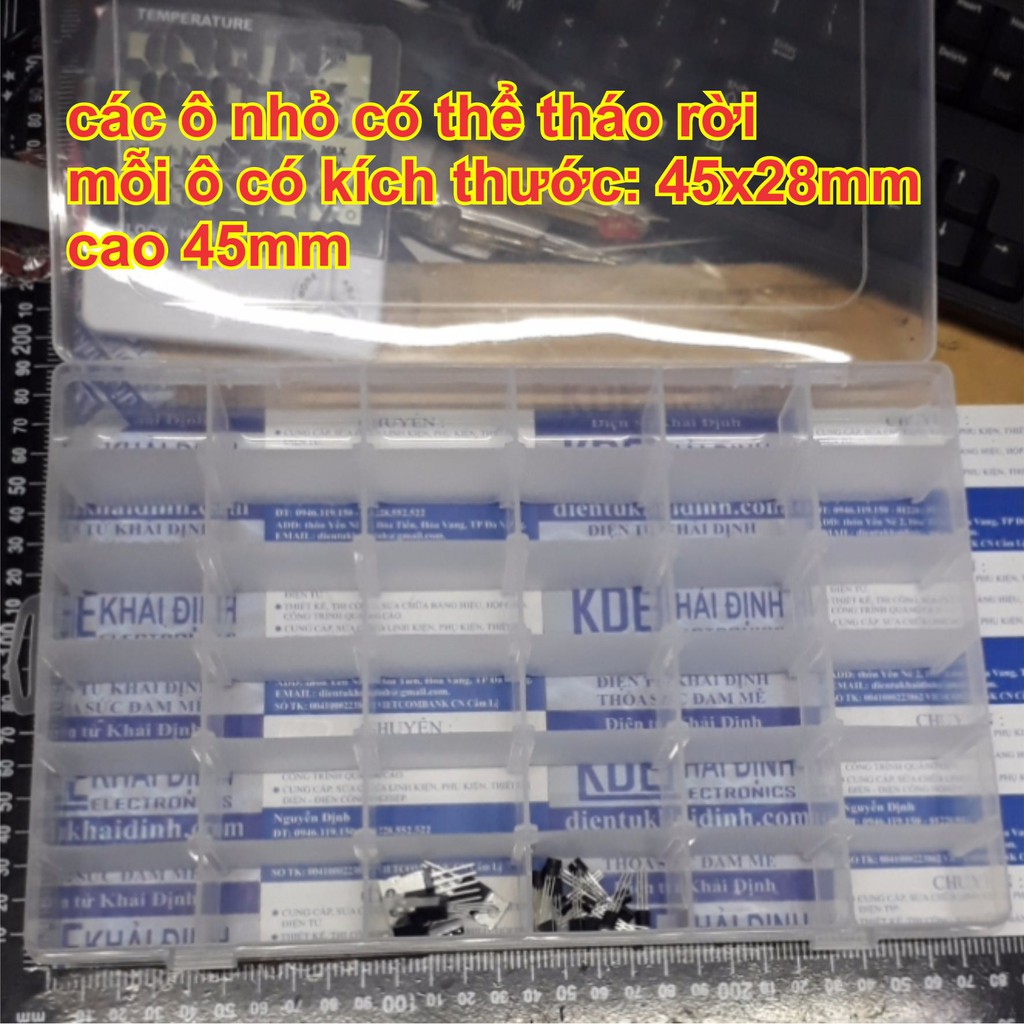 Giới thiệu hộp nhựa đựng linh kiện, ốc vít…36 ô, có thể thay đổi, 44x178x274mm kde4709
