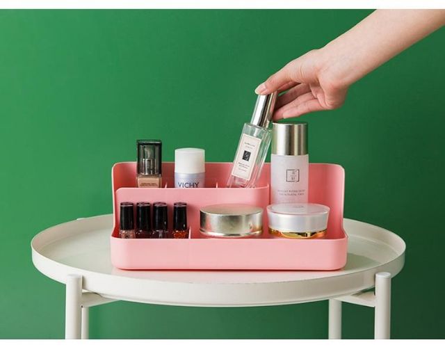 - Hộp nhựa đựng mỹ phẩm để bàn tiện dụng, thiết kế chia nhiều ngăn gọn gàng.- Màu sác: Hồng, Trắng, Xám.
