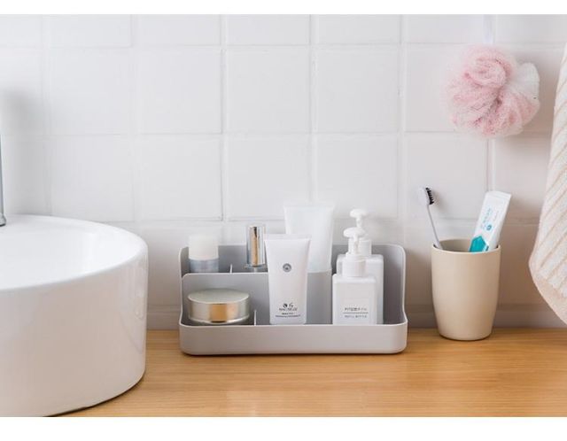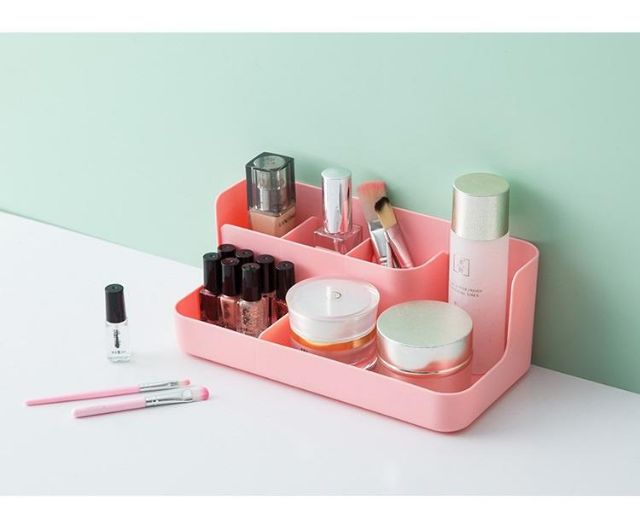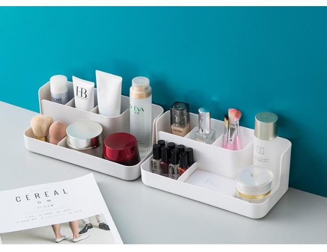 - Hộp nhựa đựng mỹ phẩm để bàn tiện dụng, thiết kế chia nhiều ngăn gọn gàng.- Màu sác: Hồng, Trắng, Xám.