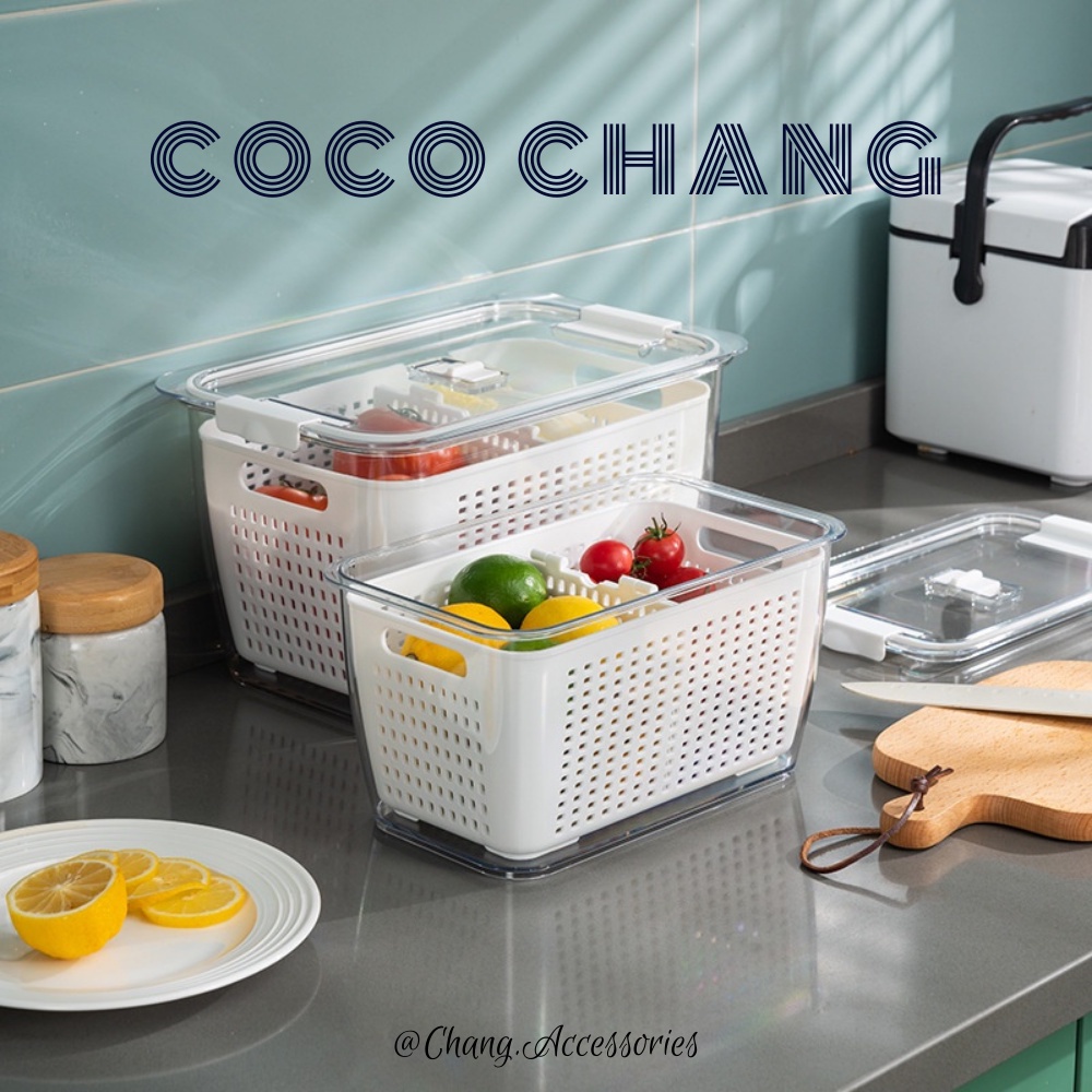 COCOCHANG CAM KẾT Hộp nhựa đựng thực phẩm 2 lớp cao cấp Hokoli kèm rổ thoát khí, nước, hộp để tủ bảo quản thực phẩm 2 ngăn tiện lợi – cocochang