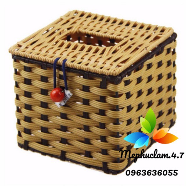 Hộp nhựa giả mây vuông đựng giấy ăn cho quán ăn, khách sạn, nhà nghỉ, hộ gia đình, quán cafe, văn phòng,...