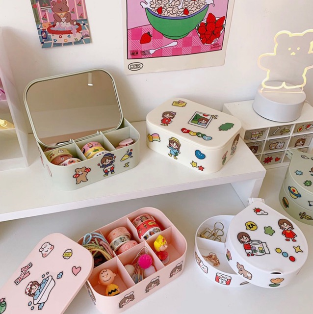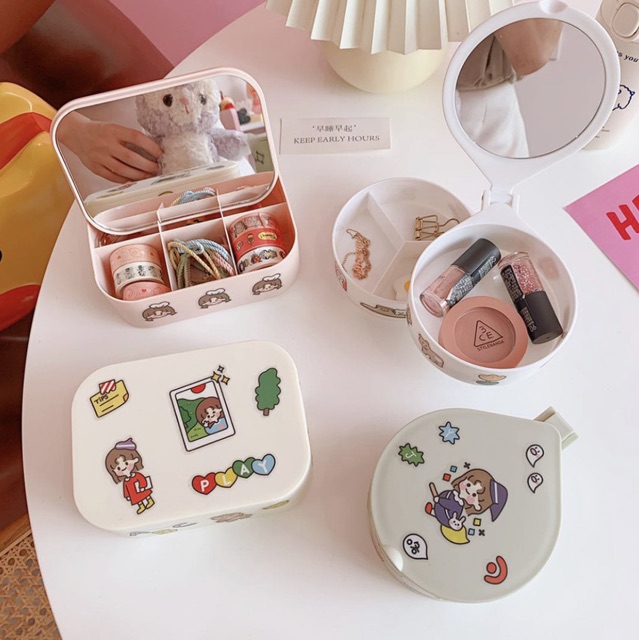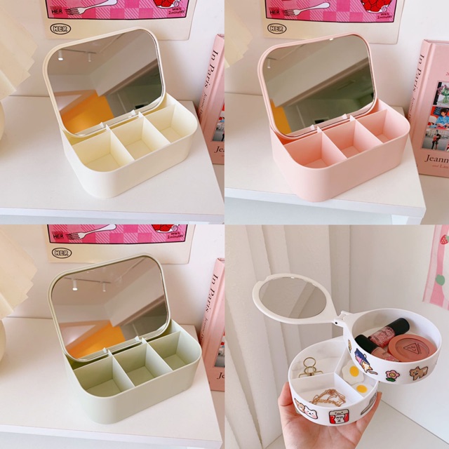 Hộp nhựa kèm gương đa di năng đựng đồ dùng hoặc đồ make cực kì tiện nha ✨.Hộp chữ nhật có 3 màu : be - xanh - hồng , lẻ 80k/c