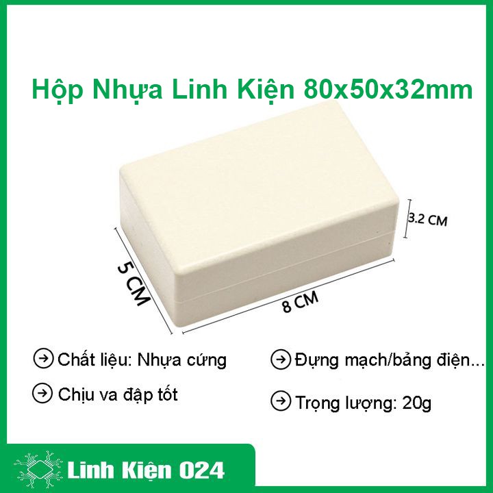 Hộp Nhựa 80x50x32 MMHộp Nhựa 80x50x32mm là một sản phẩm đa năng: được dùng đựng mạch điện, bảng điện,...Đảm bảo gọn nhẹ thuận lợi cho việc di chuyển.
