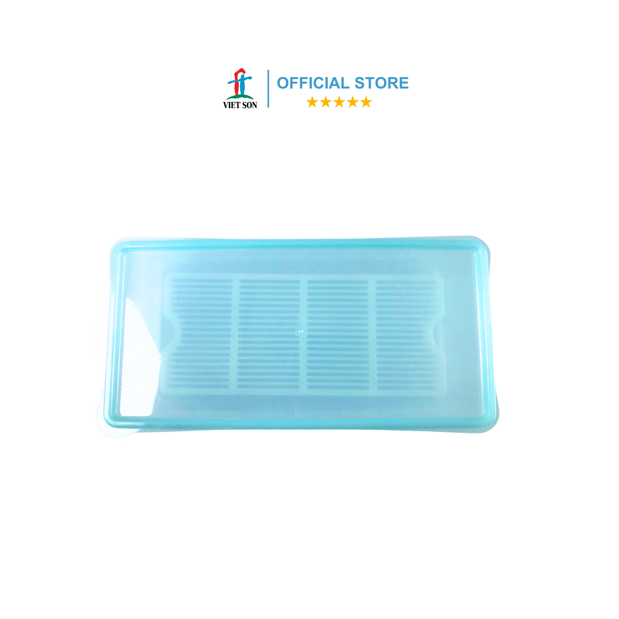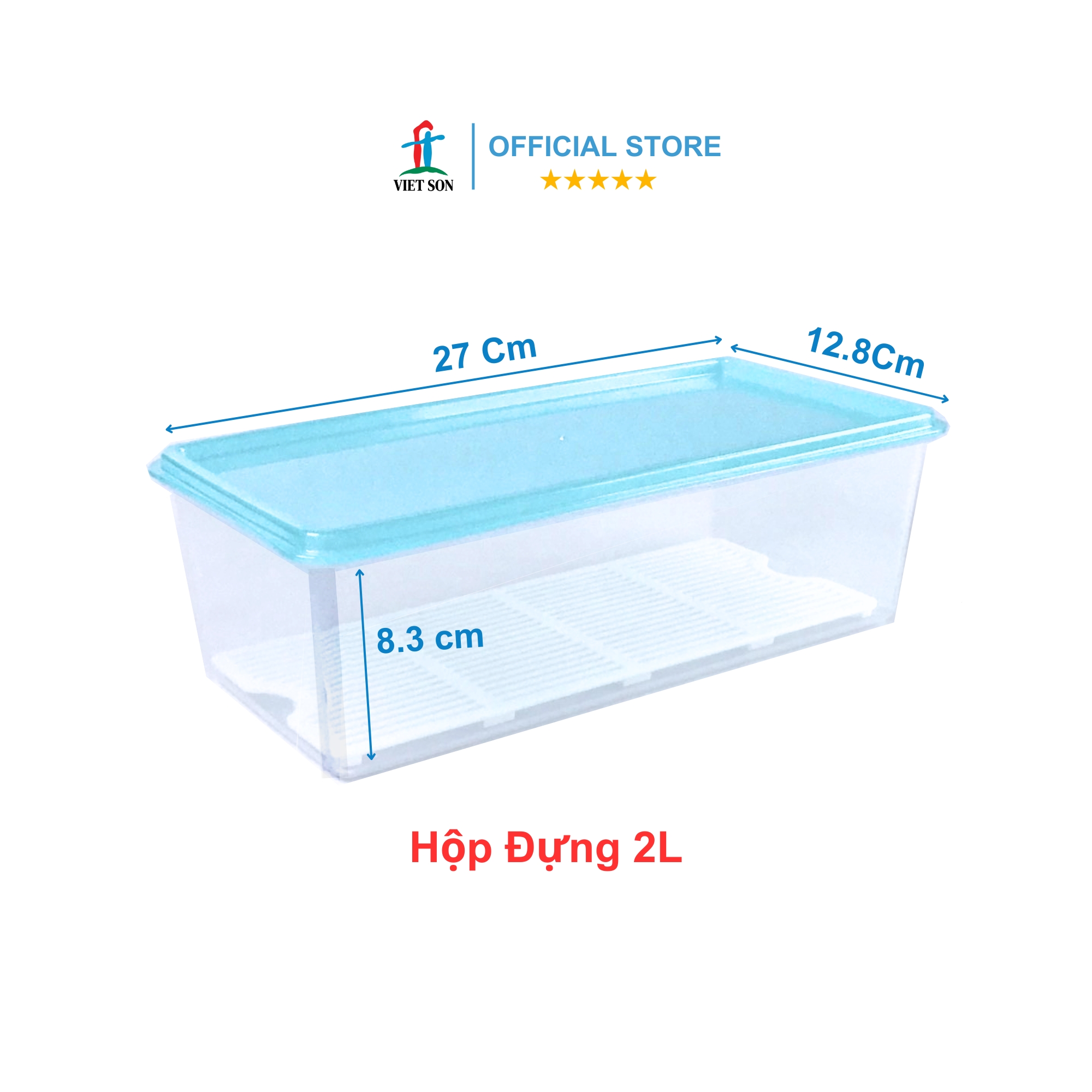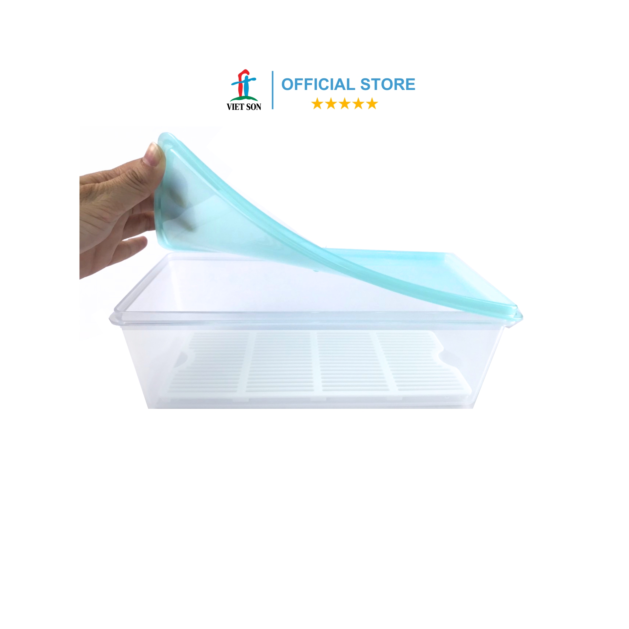Hộp Nhựa Thực Phẩm Chữ Nhật Nắp Kín Có Khay Ráo Nước Việt Son 2L