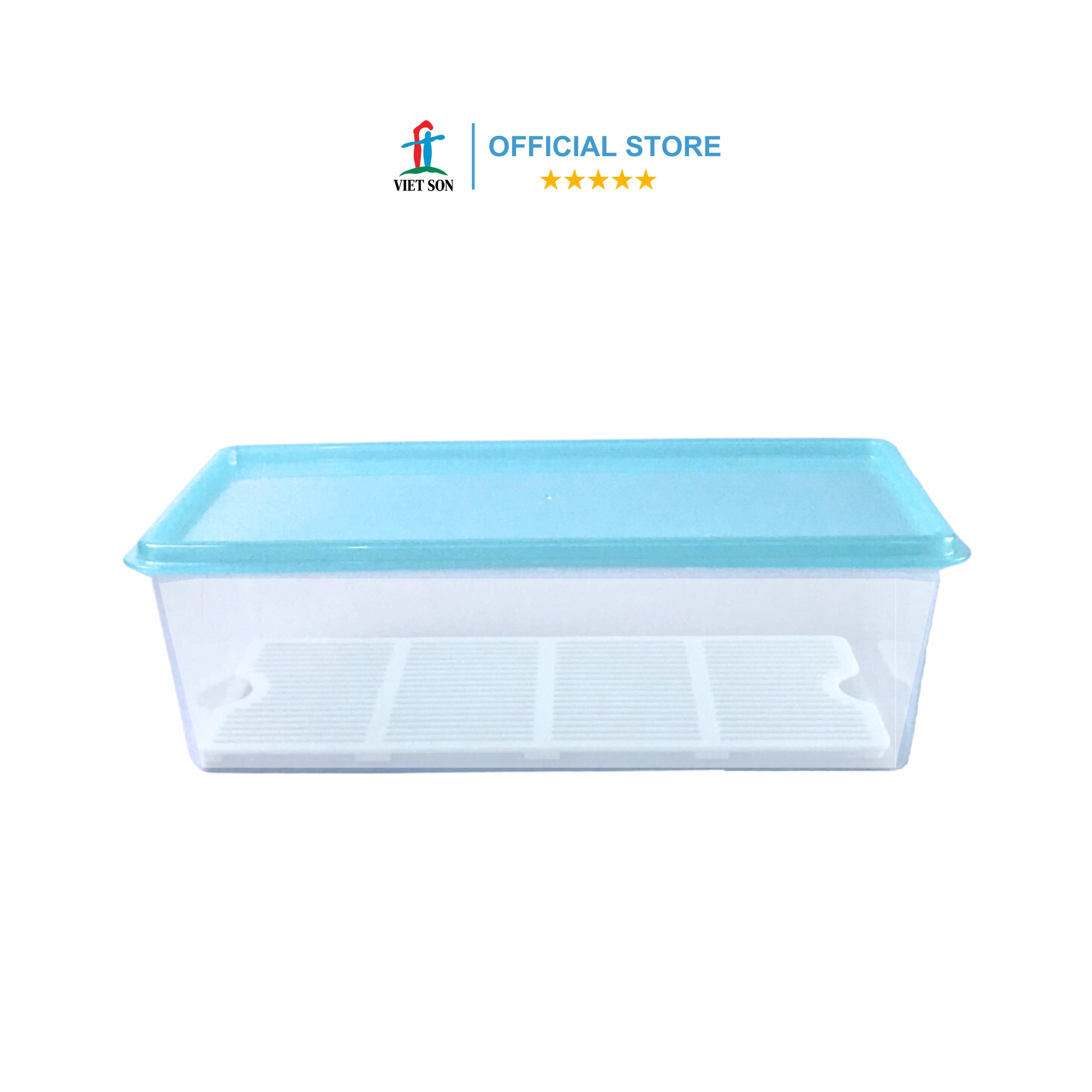 Hộp Nhựa Thực Phẩm Chữ Nhật Nắp Kín Có Khay Ráo Nước Việt Son 2L có khay tách nước cực kì tiện lợi, nắp đậy bảo quản và có thể xếp chồng các hộp nhờ đó tủ lạnh sẽ gọn gàng cùng với thức ăn được bảo quản tốt nhất.