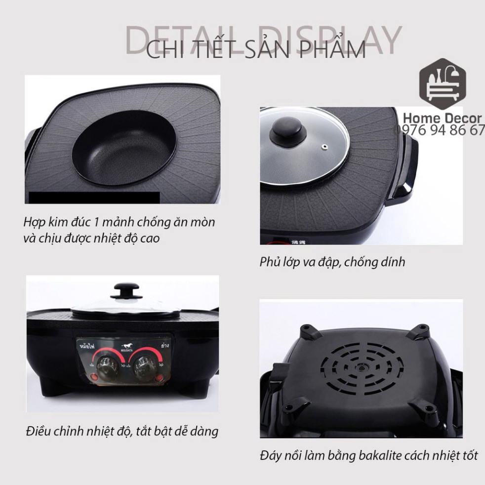 ✔️ Bếp lẩu nướng 2 ngăn đa năng 2 trong 1 có nút điều chỉnh nhiệt dễ sử dụng