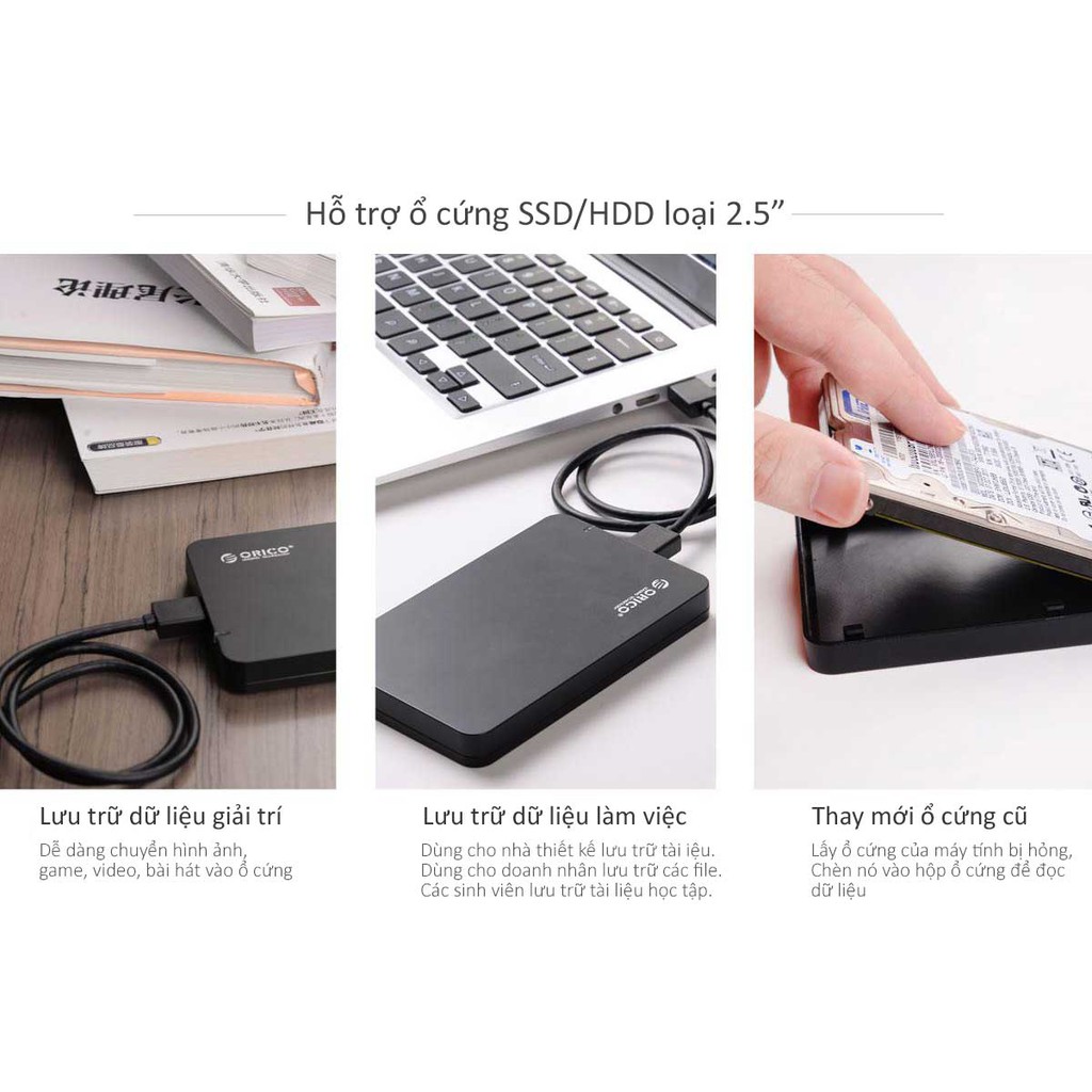 Hộp ổ cứng 2.5" SSD/HDD SATA 3 USB 3.0 ORICO 2569S3-BK( ĐEN) - Nhà Phân Phối Chính Hãng