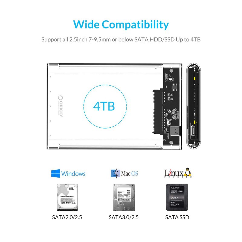 - Hộp ổ cứng 2.5" SSD/HDD SATA 3 USB3.1 Gen2 Type-C ORICO 2139C3-G2-CR