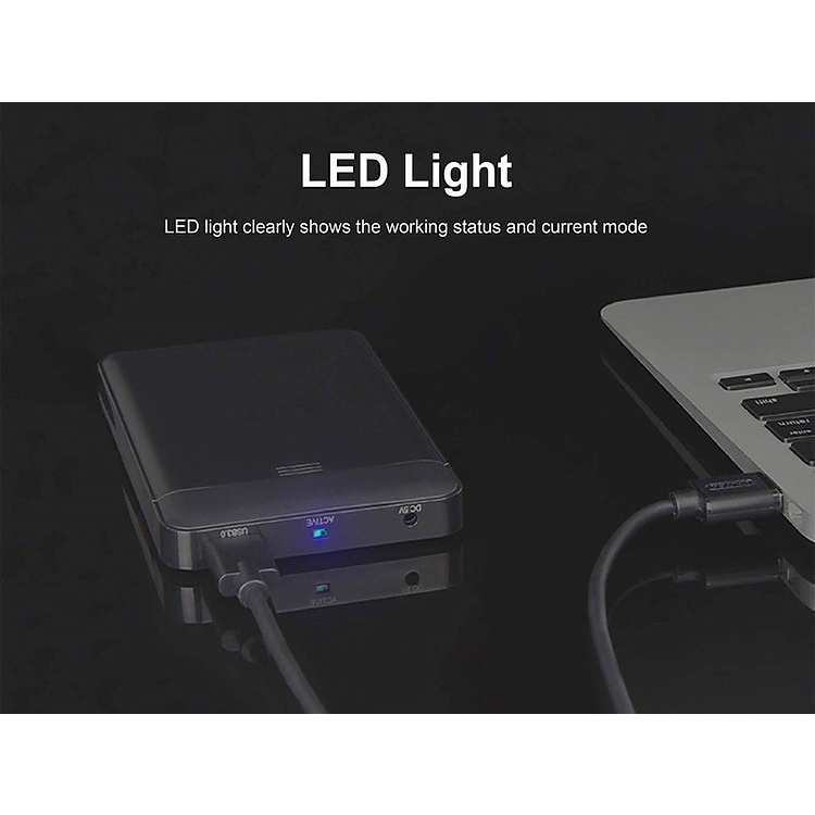 Không cần bất kỳ công cụ nào để cài đặt HDD hoặc SSD, thiết kế cắm và chạy với chỉ báo nguồn LED màu xanh lam.