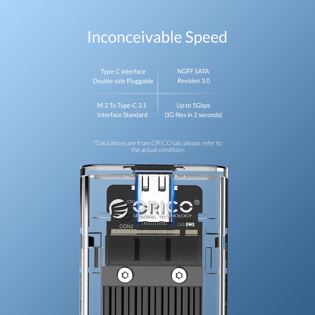 TÍNH NĂNG NỔI BẬTHộp ổ cứng SSD ORICO M.2 SATA Type C - Tốc độ 5Gbps.