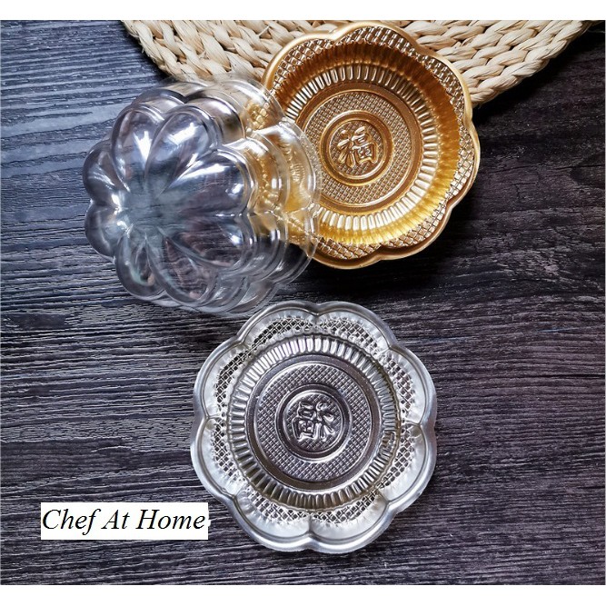Hộp PET đế vàng hình hoa đựng bánh trung thu [10 cái]Hộp vừa bánh 100-125gr