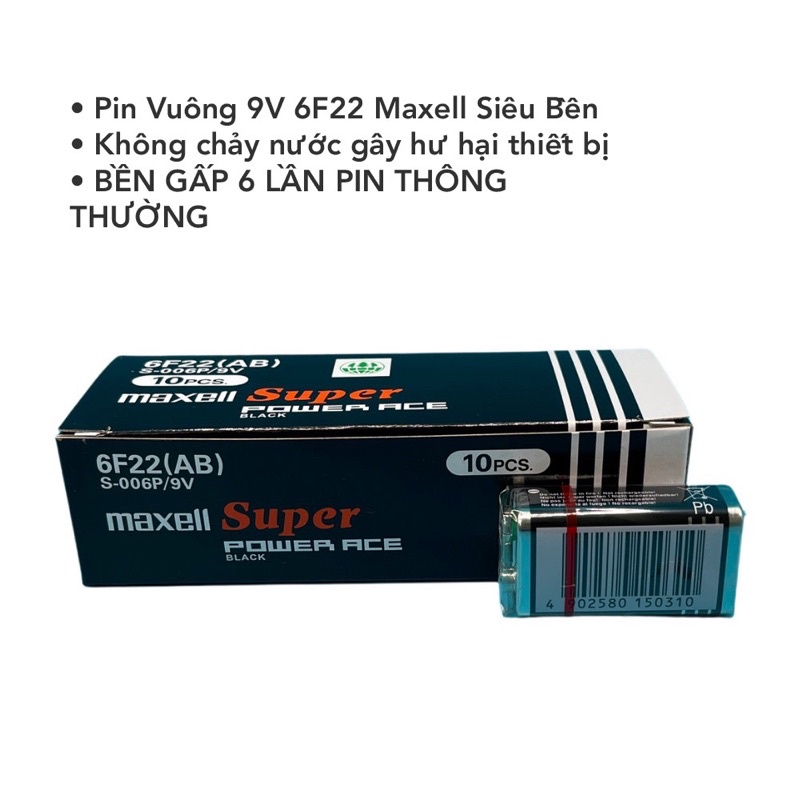 Hộp Pin 9V , Pin vuông ( Mã 6F22 ) Maxell Siêu bền - Hàng chính hãng