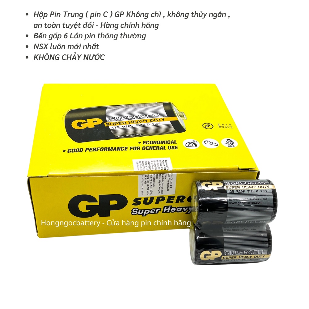 Pin Trung ( C ) 1,5V là dòng pin phổ thông , được sử dụng rộng rãi cho rất nhiều thiết bị như đồng hồ , Bếp Gas , Radio máy y tế , và rất nhiều thiết bị sử dụng pin C 1,5V khác- Pin C GP batteries với đặc điểm là không chứa các chất độc hại như chì , thủy ngân , nên rất an toàn với môi trường và sức khỏe con người . Với công nghệ chế tạo tiên tiến. Pin GP bền hơn pin thông thường nhiều lần