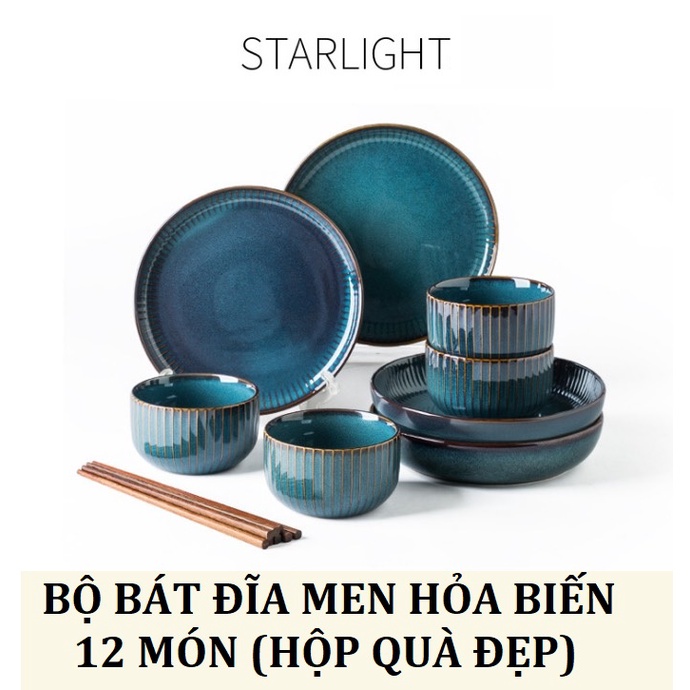 Giới thiệu (HỘP QUÀ ĐẸP) Bộ bát đĩa sứ men hỏa biến xanh ngọc Star - Bát tô sứ cao cấp phong cách Bắc Âu