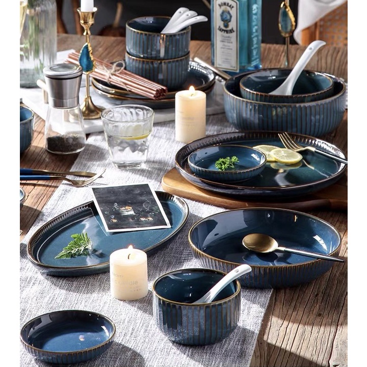 Nhà cửa & Đời sống > Bộ đồ bàn ăn > Tô || (HỘP QUÀ ĐẸP) Bộ bát đĩa sứ men hỏa biến xanh ngọc Star - Bát tô sứ cao cấp phong cách Bắc ÂuCòn hàng