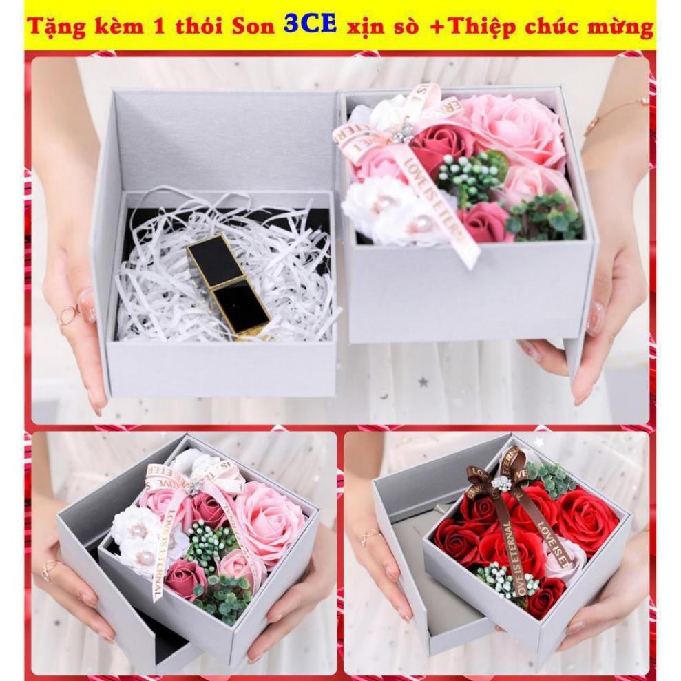 Giới thiệu Hộp Quà Tặng Bạn Gái 8-3 Hoa Hồng Sáp Thơm + kèm 1 Thỏi Son 3CExịn sò sang chảnh cùng Thiệp lời chúc