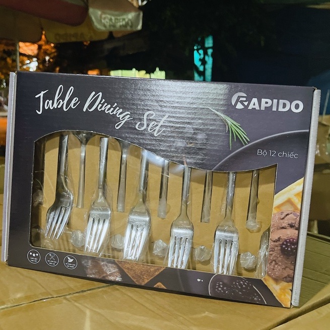 Nhà cửa & Đời sống > Bộ đồ bàn ăn > Dĩa || [ Hộp Quà Tặng ] Bộ Thìa Dĩa inox Thép Không Gỉ SUS 304 Cao Cấp Rapido 6 đôiCòn hàng
