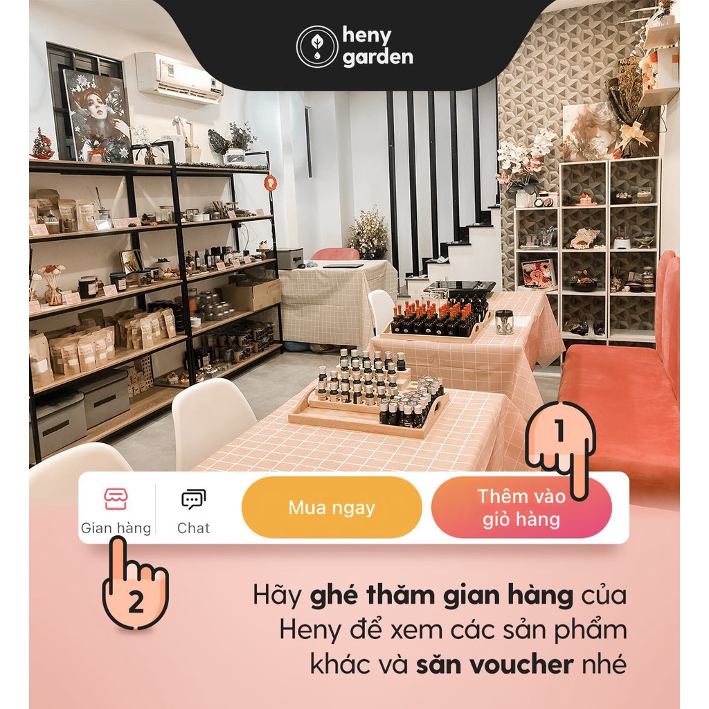 - Bước 1: Bạn chọn & thêm vào giỏ hàng các sản phẩm từ gian hàng Heny Garden