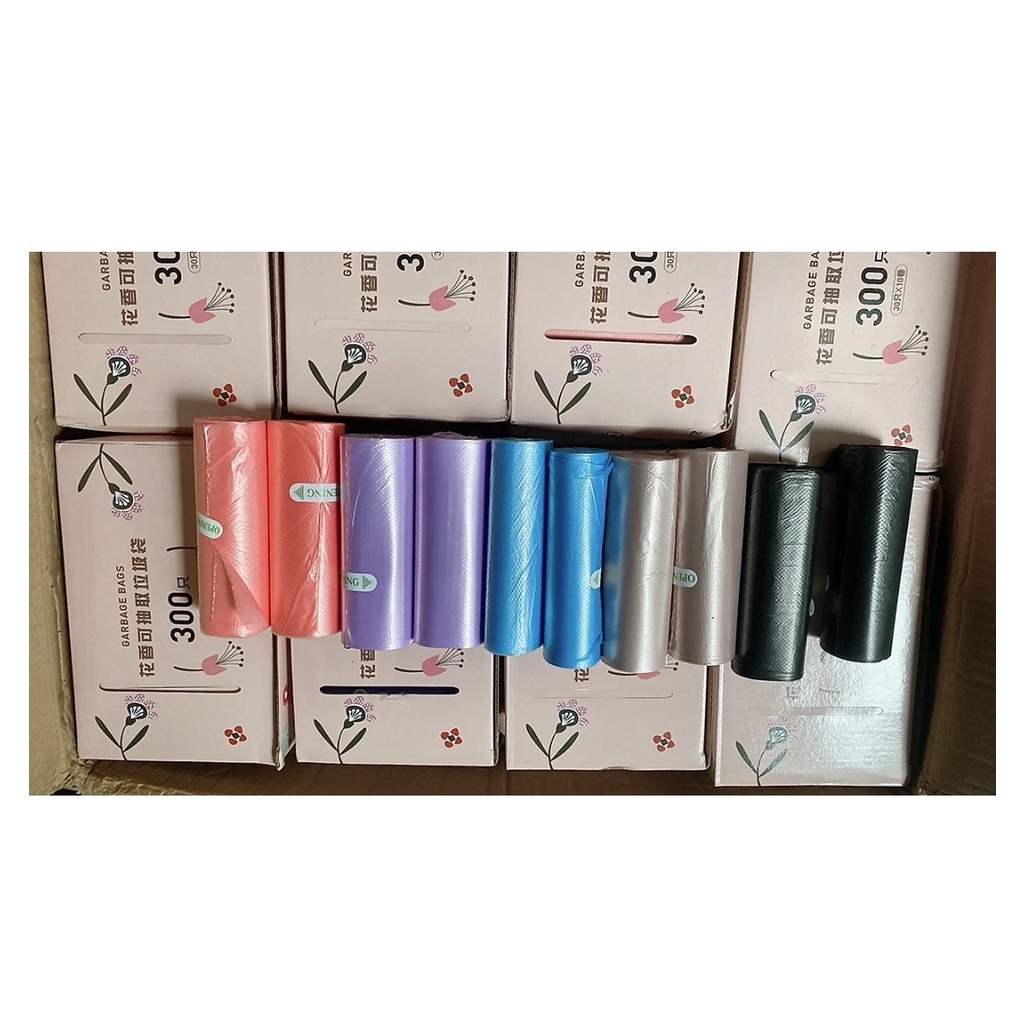 HỘP 10 CUỘN TÚI ĐỰNG RÁC 300 LẦN RÚT TỰ PHÂN HUỶ NHIỀU MÀU SẮC SIÊU DAI, KHỬ MÙI HIỆU QUẢ (Nội Địa Trung)👉 👉 hộp 300 túi rác đủ màu