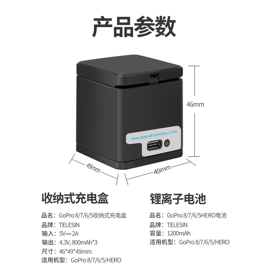 Cameras & Flycam > Phụ kiện máy ảnh > Bộ sạc pin || Hộp sạc 3 pin Telesin cho Gopro 8 7 6 5 mẫu mớiCòn hàng