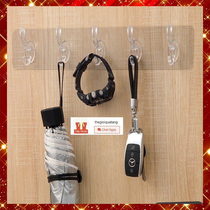 Nhà cửa & Đời sống > Sắp xếp nhà cửa > Móc treo || (Có hộp sp) Thanh treo đồ 5 móc dán tường trong suốt (TGQT)Còn hàng