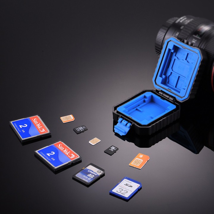 - Đựng được cùng lúc: 3SIM (1 Nano SIM, 1 Micro SIM, 1 SIM) + 2XQD + 2CF + 2TF + 2SD (KHÔNG BAO GỒM THẺ)