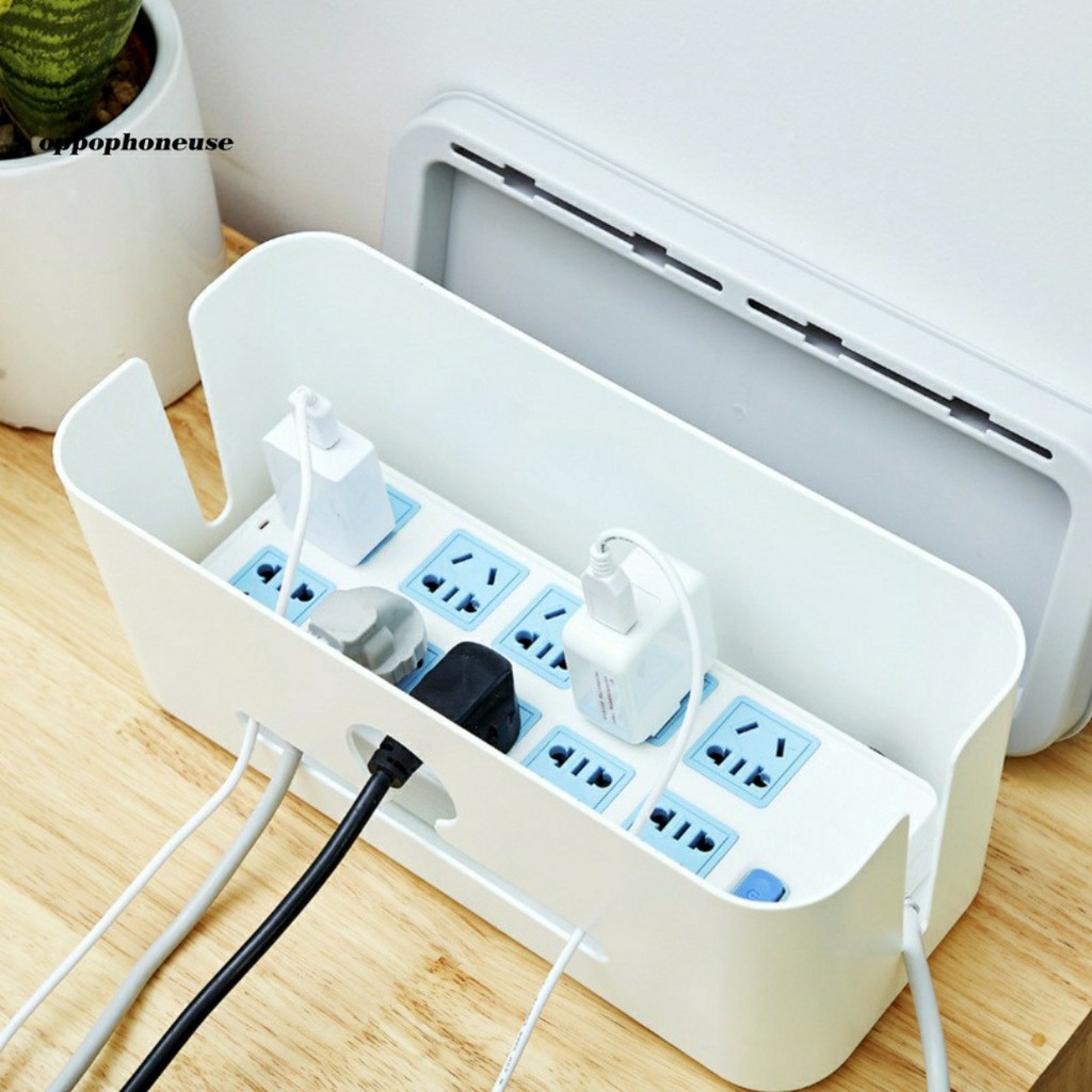 - Hộp bảo vệ ổ cắm điện được thiết kế thông minh với các khe rãnh thoáng, bạn chỉ việc cho ổ cắm điện vào trong, luồn các dây cắm qua các khe theo độ dài vừa đủ để cắm các thiết bị điện, sau đó đậy nắp hộp.